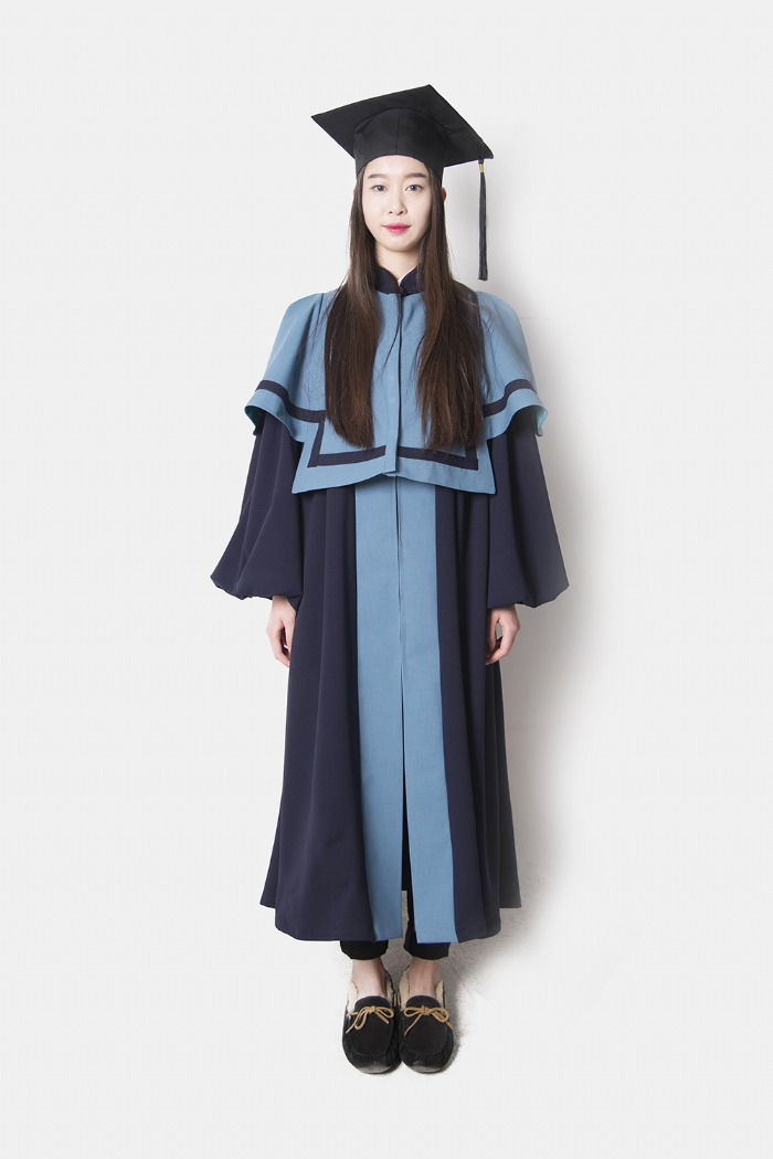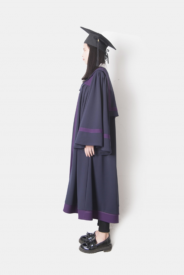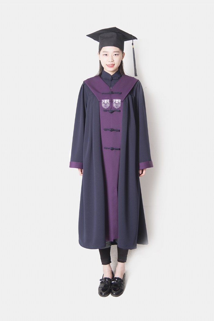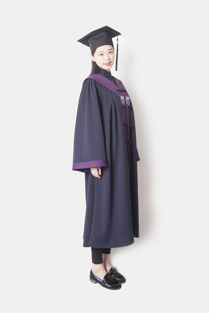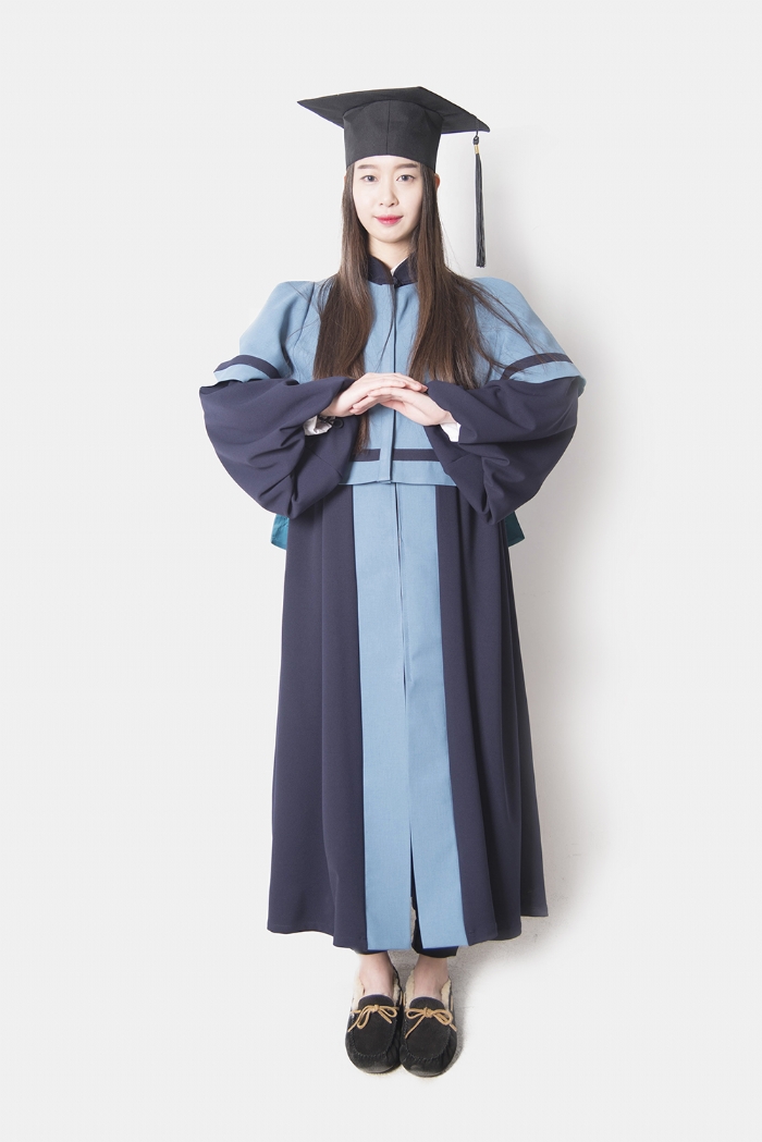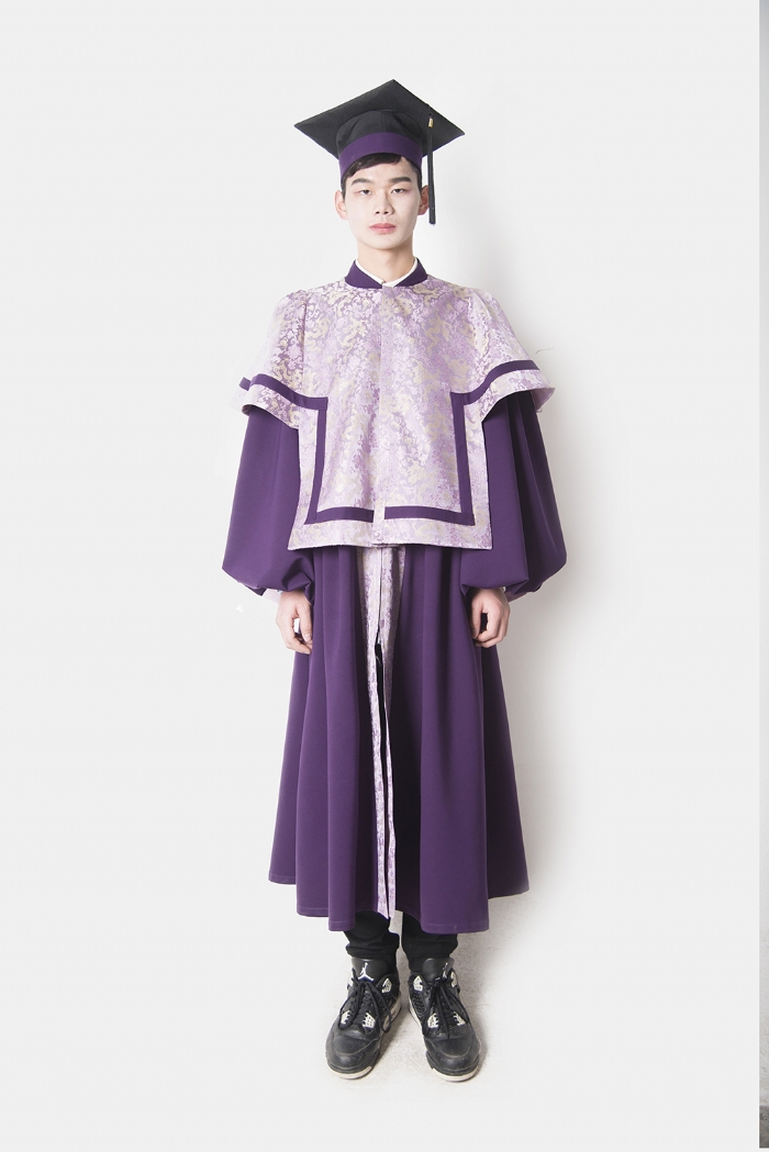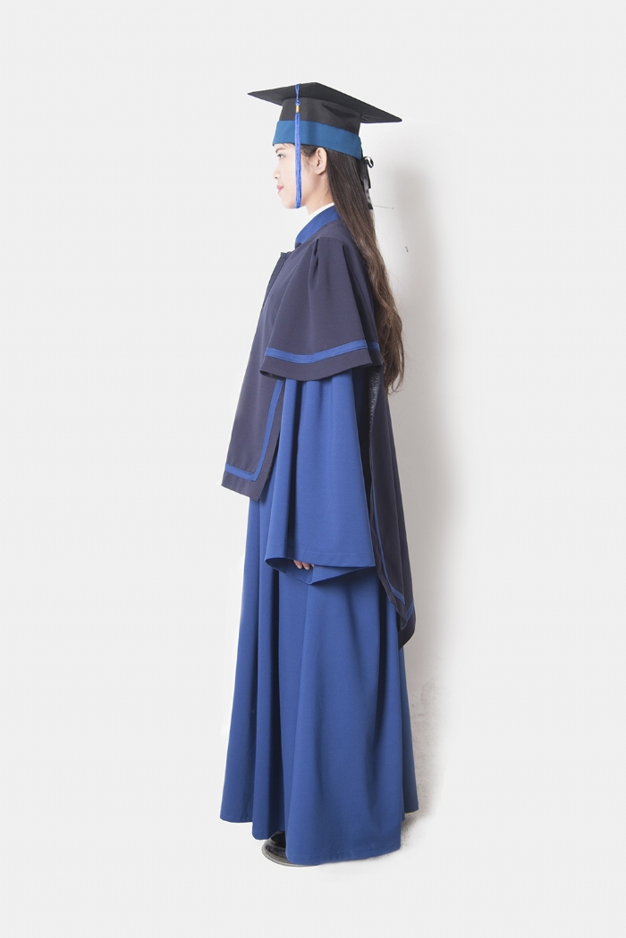 中式、欧式两个系列均按照统一的色彩模式进行设计,分别用普鲁士蓝象征学士服,地中海蓝象征硕士服,珊瑚红象征博士服,丁香紫象征导师服,梵高黄象征董事长服。