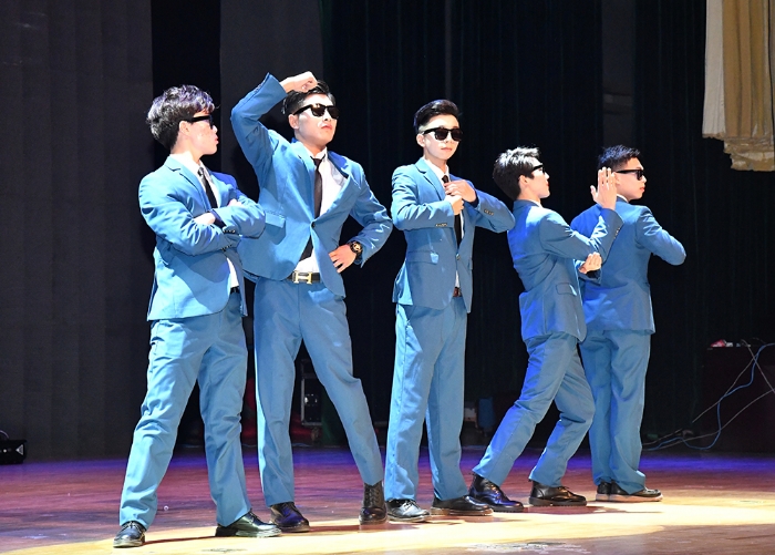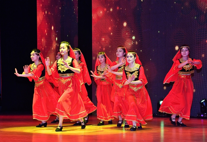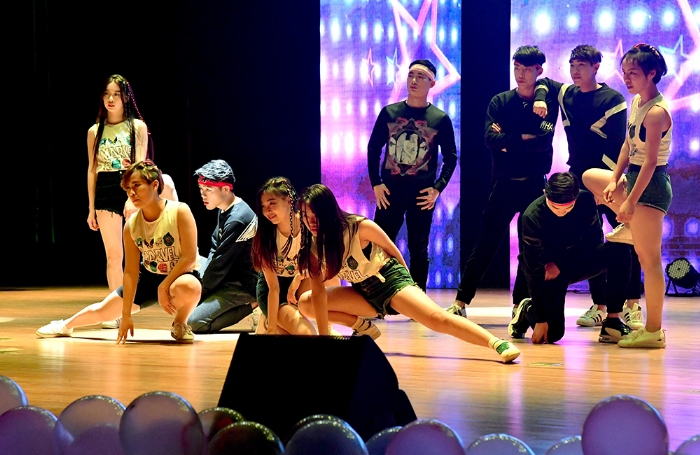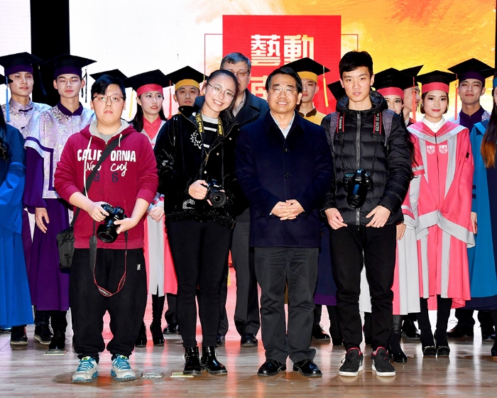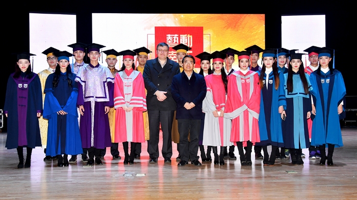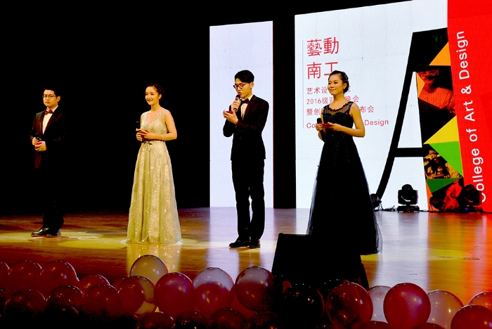 晚会前,公司党总支书记陈建华教授致欢迎辞,代表公司1200余名师生对出席晚会并担任创意学位服评审专家的公司和职能部门领导、嘉宾以及兄弟公司师生表示热烈欢迎!向为筹备晚会付出辛勤劳动的师生表示衷心感谢!并简要介绍了创意学位服设计初衷,及学位服的设计过程。接着,由院分团委、员工会联合共同筹备的2016级迎新晚会,为观众奉献上了“欢快、祥和、时尚、朝气和活力”文艺节目。晚会在《开场舞》中拉开序幕,美妙歌舞时而如涓涓细流,时而如熊熊烈火,观众情绪也随音乐而律动。2016级辅导员,兼职辅导员和助理班主任的诗朗诵《青春》,表达了年轻人追求和对美好生活向往。《艺路非凡》反映了一群背着画包,提着画袋,不论严寒和酷暑,都奔波在备考路上的美术生,他们带着梦想,不断前行。《背叛者》表达了一群追求个性员工,用充满表现力的肢体动作,启发人们善于打破常规,勇于创作,将会获得惊人成绩。还有欢乐的新疆歌舞《花儿为什么这样红》,节奏串烧《cups》等给观众带来多种体验。
