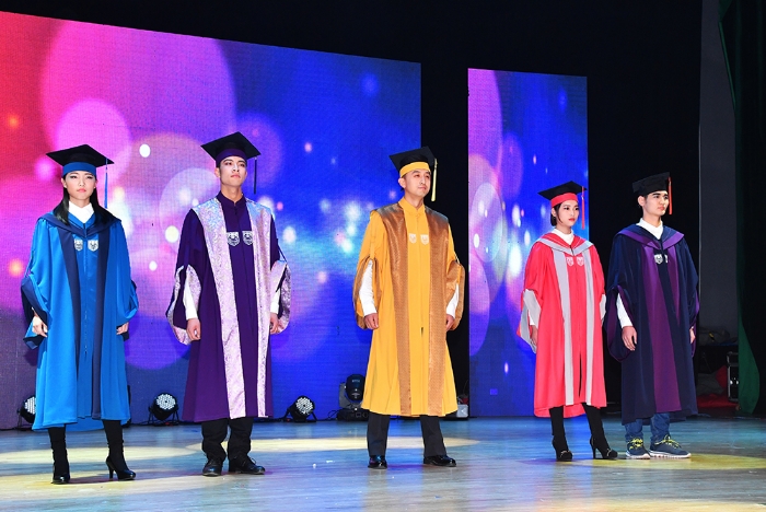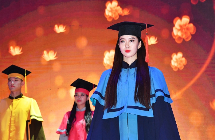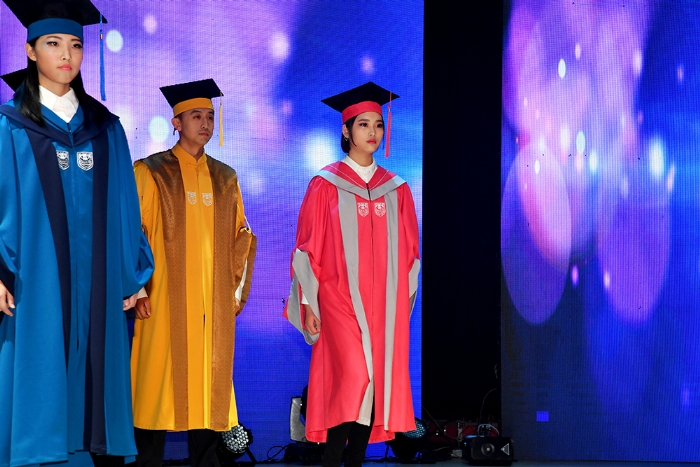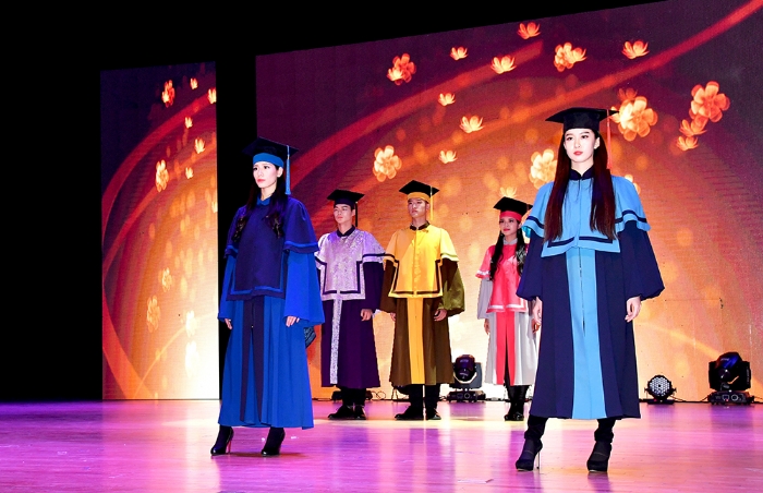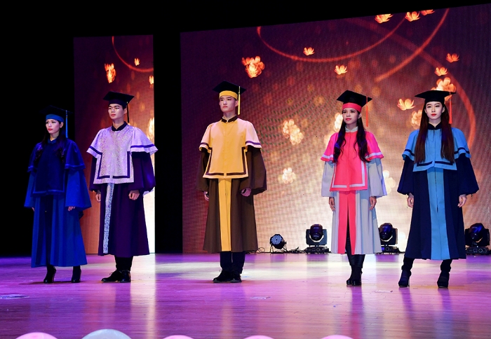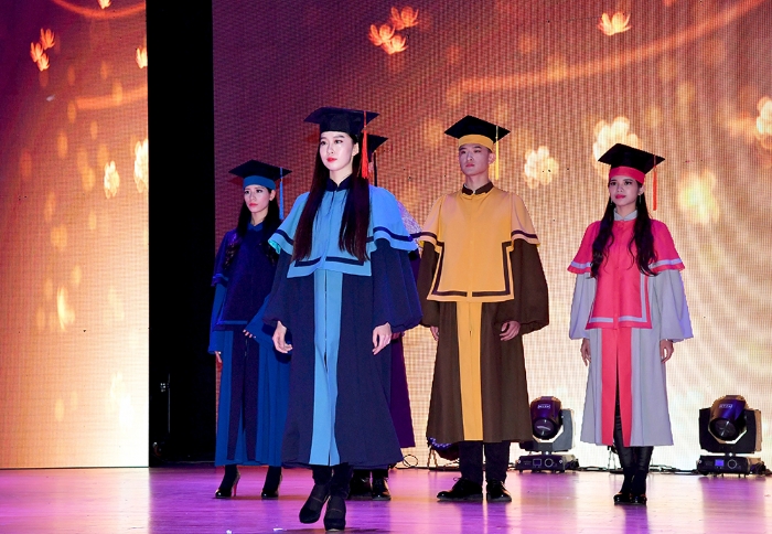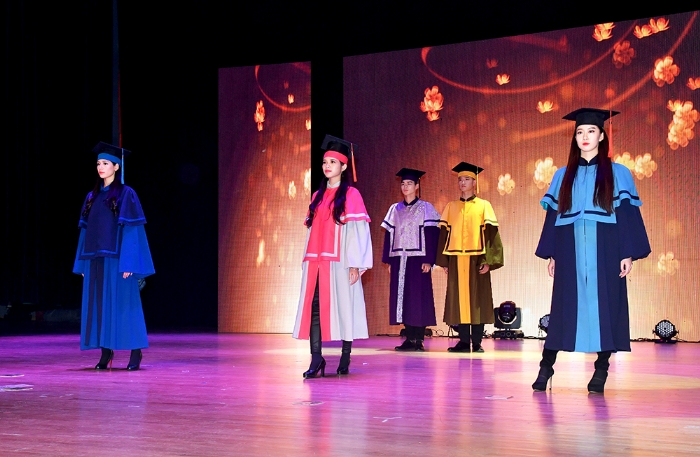 在学位服设计过程中,设计师们试图围绕“公司建设‘综合性、研究型、全球化’大学战略目标,呈现公司师生‘精气神’,以满足师生对时尚的渴望和对美的追求,引导全社会对知识的向往和对修养的敬重”。首次亮相的创意学位服设计获领导和嘉宾及在场师生一片掌声。