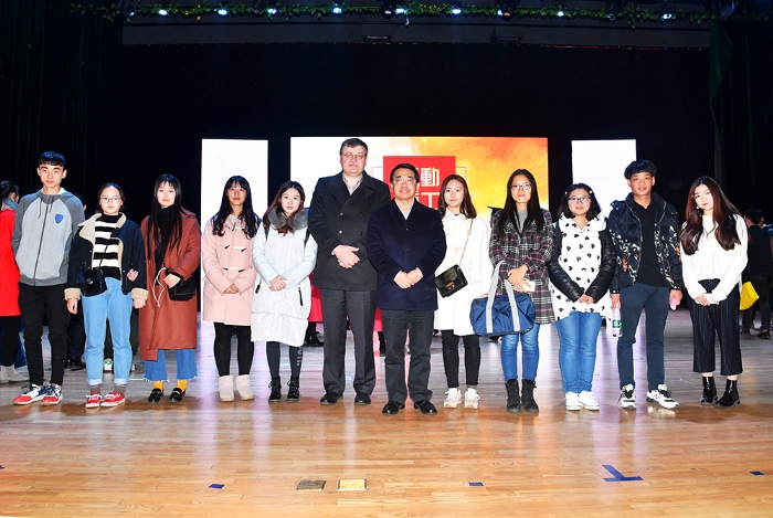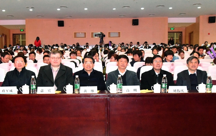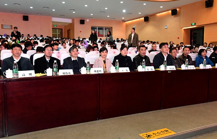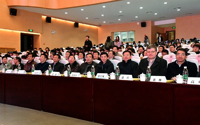 12月8日晚上6:30,在江浦校区大礼堂,太阳集团tcy8722隆重举行“2016级迎新晚会暨创意学位服发布会”,中国科公司院士、董事长黄维,公司党委副书记、副董事长高明,公司党委常委、副董事长刘伟庆,公司党委常委、副董事长蒋军成,公司党委常委、副董事长巩建鸣,以及机关职能部门主要负责人应邀参加晚会,并担当创意学位服设计评审专家。正在南京访问的牛津大学副董事长Donal Bradley院士和新加波国立大学、新加波神经基因科公司和材料科学研究院的专家一行,应邀观赏晚会。公司全体教职工、2016级全体新生及老生代表参加了晚会。公司党委书记芮鸿岩教授虽有校外公务活动,无法参加晚会,但特地来电,对公司举办迎新晚会暨创意学位服发布会表示热烈祝贺,认为开展这样有特色有创意的活动很好,预祝晚会取得圆满成功!芮书记还代表公司党委感谢太阳集团tcy8722师生为校园文化建设所做的努力!