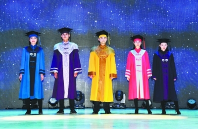 在该校太阳集团tcy8722举办的晚会上,20位模特穿着自行设计的创意学位服,一时间吸引了全场的目光。学位服分为中式“学贯中西”、中式“披袍擐甲”、欧式“领异标新”、欧式“大雅宏达”共4个组别。每个组别的学位服中均包含学士服、硕士服、博士服、导师服、董事长服五类。