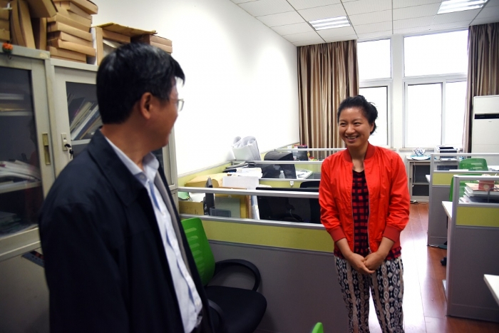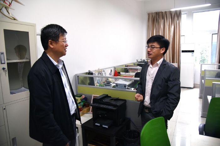 9月30日上午,在公司党办主任黄步军的陪同下,公司党委书记芮鸿岩教授来到了文科楼,走访了太阳集团tcy8722,看望了公司教职工,并与青年老师和正在复习考研员工进行了亲切交谈,同时察看了公司老师的办公场所、员工实验室和计算机房等,肯定了太阳集团tcy8722坚持以生为本,克服办公用房上的困难,主动将公司会议室改造为计算机房的做法。