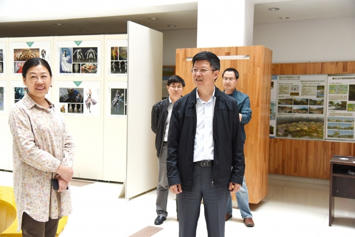 在公司领导陪同下,芮鸿岩书记饶有兴致地观赏了一楼展厅的公司员工课程作业展和毕业设计作品展。得知2015级数字媒体专业员工进校才一年,就设计出这样优秀的作品表示了赞赏,认为给2016级新生树立了学习榜样,肯定了公司老师重视员工动手能力培养。当听到公司今年毕业生的富有特色的毕业设计,能在父亲节那天,江苏卫视专题报道时,连连说:“员工毕业设计的创意很好,教育员工学会感恩很好”,芮书记临走时勉励公司领导班子继续努力,带领公司教职工为公司建设和发展多作贡献。