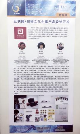 经校赛、省级复赛和省级决赛三个阶段,评选出南京大学“Insta360全景相机”团队等一等奖项目30项、二等奖项目71项,三等奖项目109项,最佳创意奖、最具商业价值奖、最佳带动就业奖和最具人气奖各1个,高校优秀组织奖21个,优秀指导教师30位。 公司往届硕士毕业生孙波、宋奕孜创办的知物工业设计有限公司,在吴琼导师指导下,和在校研究生团队的合作下荣获江苏赛区二等奖。