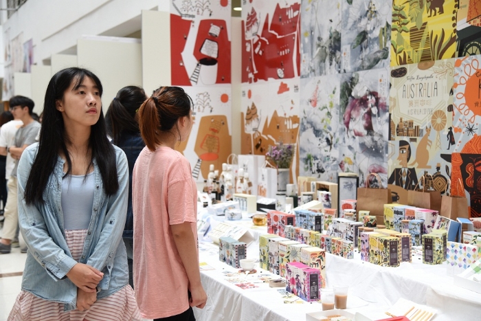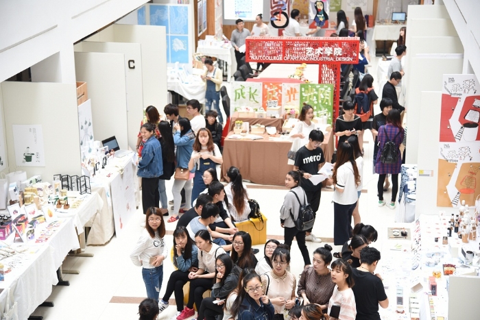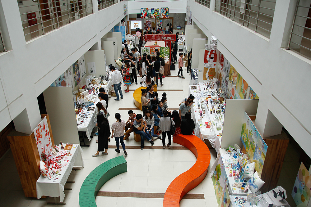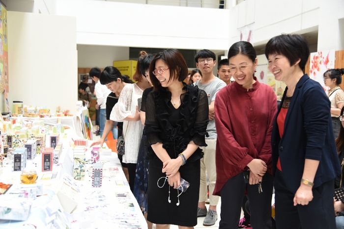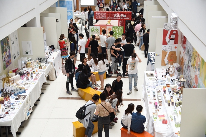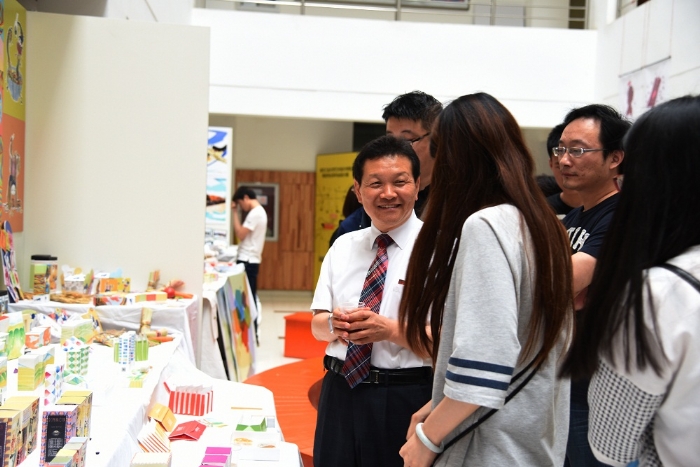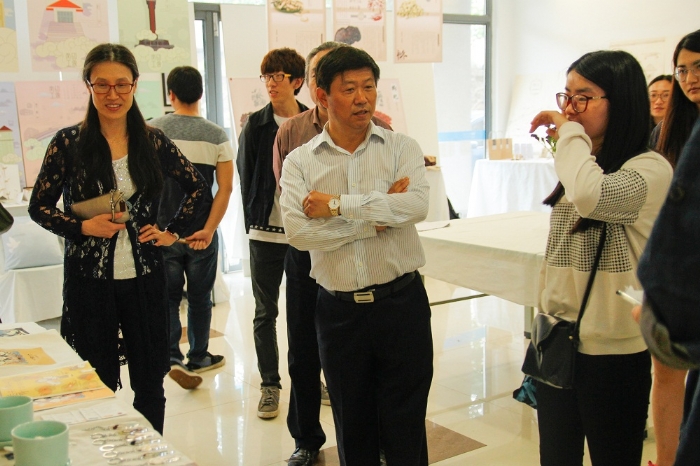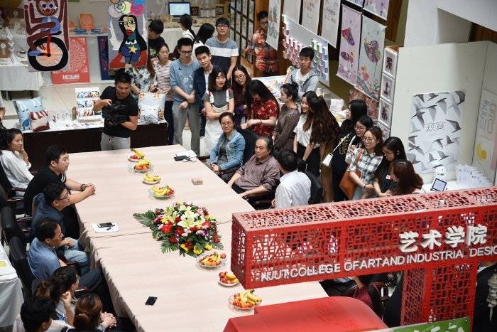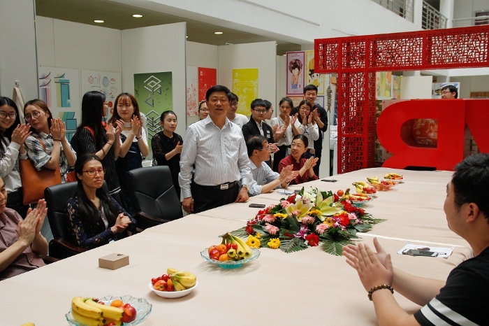 开幕式之前,在公司陈建华书记、赵慧宁经理、薛以平副经理、吴琼副经理、黄慧明副书记及专业指导老师等陪同下,副书记副董事长高明和公司教学事务部何其玲副部长等参观了全部作品展,并与同学们进行亲切交谈,认真地听取同学们对作品的介绍,了解同学们的创意理念。本次展出作品涉及多个领域,形式新颖,既不失中国传统文化的传承,又有现代感的突破与创新。