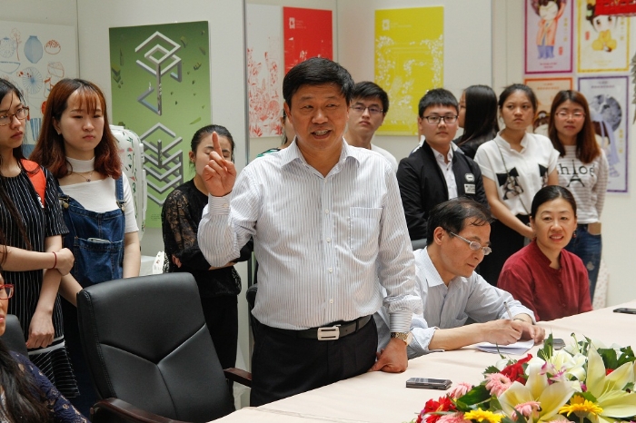 最后,副书记副董事长高明作了热情洋溢的讲话。高书记首先对同学们辛勤付出表示了充分肯定和赞赏,对指导老师认真敬业的工作态度表示由衷的感谢!高书记表示,参观本届毕业生设计作品成果展后感到十分震撼,一是作品成果展体现了规模大、作品多,如展厅场地允许的话,一定比得上专业艺术公司作品成果展;二是深受感动,同学们用了8个多月的时间,在老师们精心指导下,设计出来的作品大多选择以同学家乡特色的元素作为题材,在构思上很接地气,不少体现了我国传统民族文化的东西,敬佩同学们在毕业设计阶段的认真求实的态度。三是设计作品显现了成果化,符合公司倡导的人才培养成果产品化的要求。四是受到了一次教育和感染,作为艺术门外汉参观了同学们作品展,陶冶了艺术情操,增加了对艺术的学习和了解。高书记对同学们的未来寄予很大希望,鼓励全体毕业生走向社会后,继续坚持学习,不断地提升自己文化水平和素养,建议同学们重视人文社会科学的学习,以便获得更多的创作灵感,实现在传承中获得创新,体现出自己的创作特色。同时希望同学们的设计作品与实际更好地结合起来,个人发展定位和设计产品定位上要准确。高书记还从四个方面阐述了“如何确立准确的观念、把握清晰的思路、建立科学合理的方案、争取有力的支撑”的重要性。高书记语重心长地希望同学们毕业后,一定要按照公司、老师、父母提出的要求和期望,尽早尽快地获得就业,顺利地适应社会用人单位新环境和新要求,使自己的设计作品投向企业,成为一名名符其实的艺术人才,争取做一个出名的艺术家。
