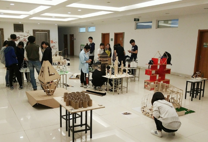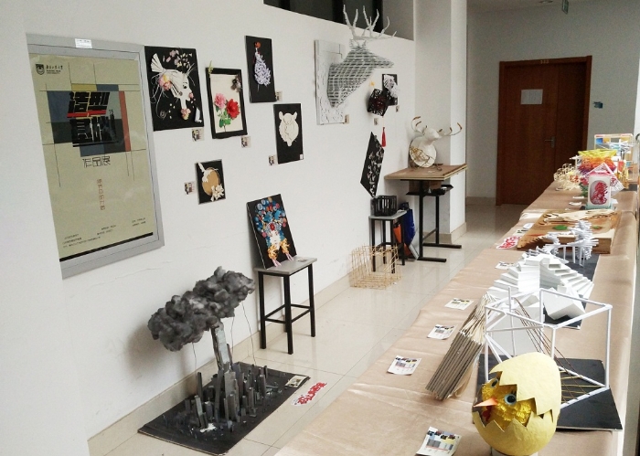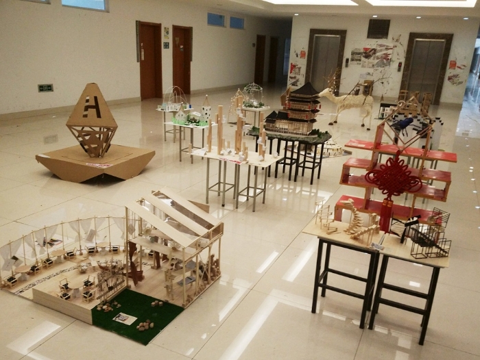 造型基础是环境设计专业的基础课程,该课程的授课老师是环境设计系的张安华老师。造型基础课程的学习内容从抽象化的点、线、面、体等造型元素开始,摆脱传统陈旧的思维制作方法,对各个元素在空间中重新组合和排列,进行新形的创造,从而获得立体造型能力的提高。该课程的主要训练内容包括四个方面:一是面材构成的练习;二是块材构成的练习;三是线材构成的练习;四是空间构成的练习。通过15级环境设计专业同学们为期8周的努力学习和不断思考,在无数次的尝试和失败中,部分优秀作品脱颖而出并在此次展览中集中展示。