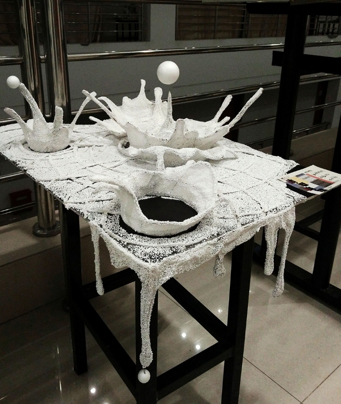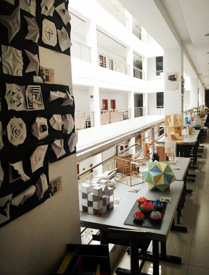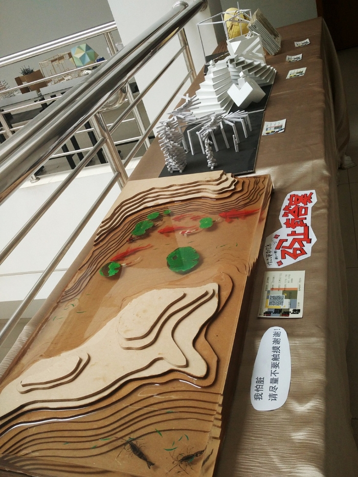 参展的同学均是环境设计系的大一新生,他们在没有丰厚的专业知识和创作条件支持的前提下,根据老师的引导和自身努力钻研,以独特的创意思维和强烈的空间立体感为其作品注入了鲜活的灵魂,从而做出具有一定创新性的立体作品。本次展览不仅是对环境设计专业造型基础课程教学水平与教学成果的一次集中展现,更是一年级同学们对三维空间、立体造型基本认识的大胆创新。参展作品基本都是同学们纯手工制作加工完成,他们把抽象化的点、线、面元素转化为对生活有实际意义的作品——可以作为家居装饰空间作为装饰艺术品,可以放大作为城市公共雕塑,也可以作为建筑或产品外型的雏形。通过该课程的学习为同学们打开了新的视野,开发了他们对三维立体的空间思维能力。