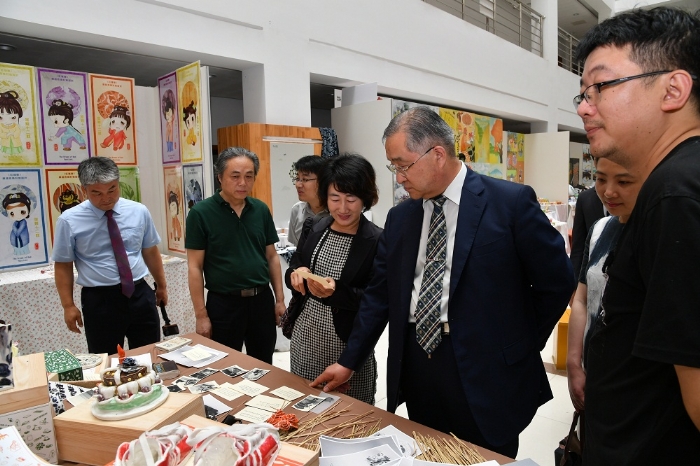韩国圆光大学金道宗董事长一行观赏2016届毕业生设计作品成果展
