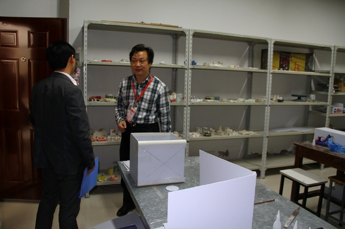 教育部本科教学工作审核评估专家、东南大学教务处处长雷威教授察看雕塑实验室
