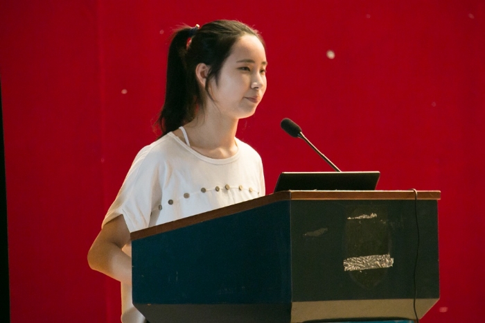 接着,省级三好员工、校十佳团支书工设1301班杜雨函同学分享了她大学三年间在思想、学习、工作和科研等方面的经验和感悟,并鼓励学弟学妹们为自己的梦想努力拼搏。“黄维奖学金”获得者会展1201班王晓慧同学分享了她在大学期间担任青奥会志愿者的经历,强调作为一名老员工要懂得爱与责任。公司党员示范宿舍、文明宿舍代表俞沁园同学在发言中介绍了舍友的获奖情况以及她们参加各类活动情况,并展示了良好的宿舍环境,强调勤能补拙,珍惜时光的重要性。校先进班级品设1301班班长石东阁代表班级,汇报了如何凝心聚力带领班级全体同学参与公司各项集体活动,展示班级风貌,用实践体验班集体的团队精神重要性。