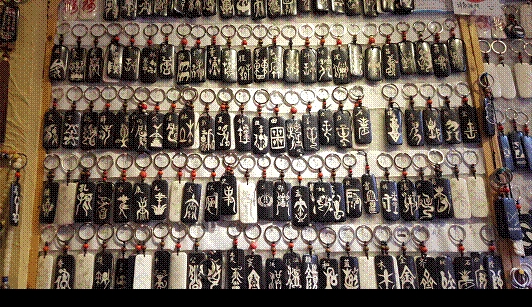 告别白让措嘉后,我们镇上专卖小挂坠等木质工艺品的四方街(图10),这些工艺品的上面基本都刻有东巴文字,我认为这些东西作为东巴文化的衍生品,虽然在一定程度上传播了东巴文化。但这些工艺品品种单一重复,缺乏地方特色,而且这些小商品普遍没有专门的包装,大多数都是舶来品。我个人认为,只有衍生于纳西族历史文化与社会生活的,才真正属于丽江旅游纪念品之列,它是文化的创新与继承,而不是将纳西文化符号死搬硬套在舶来品上。所以那些纳西文化真正的文化衍生品培育品牌意识,保护和继承好纳西文化。
