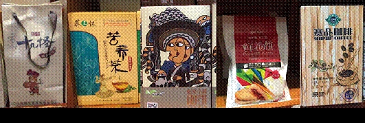 除此之外,我还看到了当地很多风格迥异的包装,这些包装虽然在视觉上都有一定冲击力,在图形方面运用了民族传统图腾,但有很大一部分包装设计都没有很好地结合民族特色。人们通常会因为一个商品精美的包装而购买此商品。一个商品的包装不仅起着功能性作用,而且在体现商品特色的同时,提高着商品的形象。我的毕业设计会借鉴其中优秀的经验,比如有些包装袋设计适合做中药包装,有些包装上图形元素的应用给我的启发等等,同时避免做出千篇一律的设计。