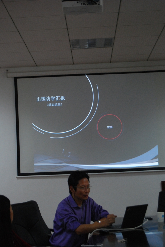 最后,曹老师认为:设计本来就脱不开艺术,因为视觉品质的追求;艺术应该有新的设计风,因为创新是艺术的根!曾勇副教授在曹红霞老师介绍的基础上又作了补充,特别介绍了他在新加坡访学期间情况,认为新加坡是一个很小岛国,总体面积和人口都和南京市差不多,但是GDP人均超过5万美元,是世界上最发达的国家之一。这种发达和其如下特点分不开的:政治稳定、社会民主、经济外向、地理优越、教育优先、崇尚创新、文化包容。曾勇老师访问新加坡得到的体会:1、教学和实践的结合,DIC和DID 。2、工作坊式教学氛围。3、本校教学和校外指导的组合4、课程的少而精。5、 员工的好学,毕业展以员工主导。6、基础老师的参与到后期设计实践。7、分组制与集体评判的结合。8、先进设备的采用——各种模型设备、各种集成功能体。两位老师毫无保留地将出国访问的体验和感悟向全体老师们作了简要汇报。