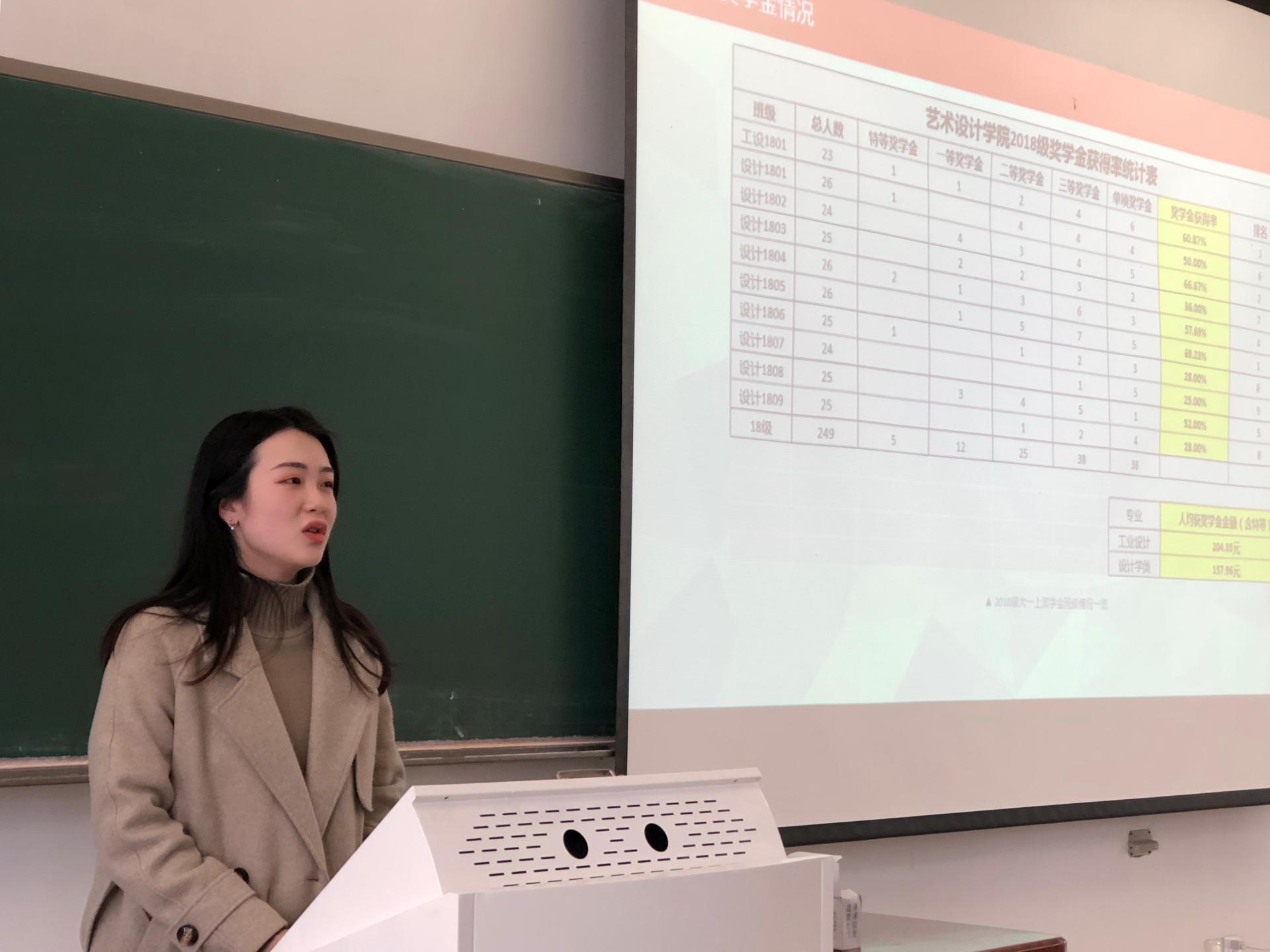 首先,设计学1801班助理班主任孙宁、设计学1802班长周千、设计学1803团支书学杨菲璠在大会上作了交流,总结了上个学期的工作,分享了成功的经验,畅谈了本学期的计划与打算。