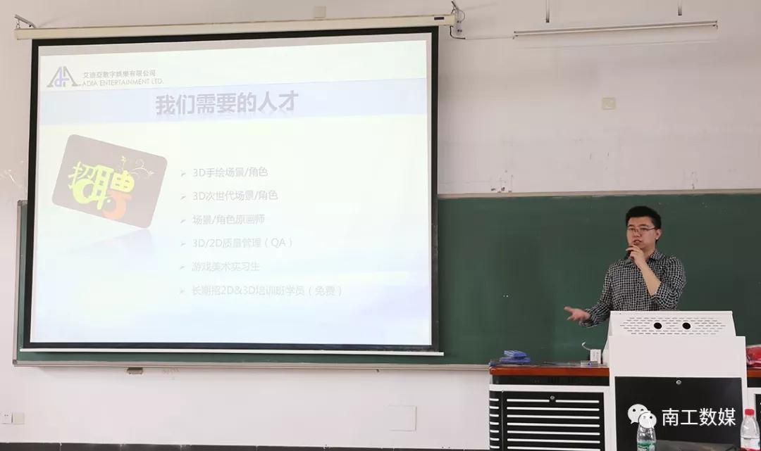 4月17日下午,在厚学601,太阳集团tcy8722数字媒体艺术系邀请南京艾迪亚动漫艺术有限公司招聘经理韩天培、火星时代教育校企合作代表史训东、姜钊老师与师生交流分享老员工求职经验,介绍岗位招聘要求和实习机会。公司数字媒体艺术系主任罗军、教师代表赵雪彤、吴捷,以及数媒1601、1701班部分同学、公司2018级部分新生参加了宣讲会。