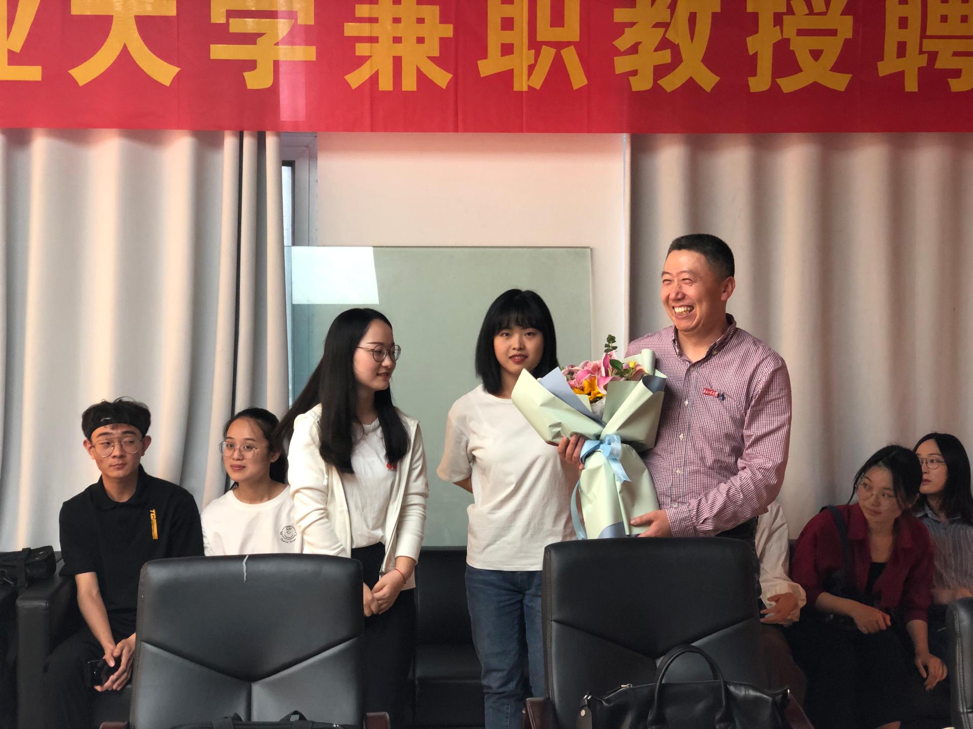 员工代表上台鲜花、为何教授佩戴校徽