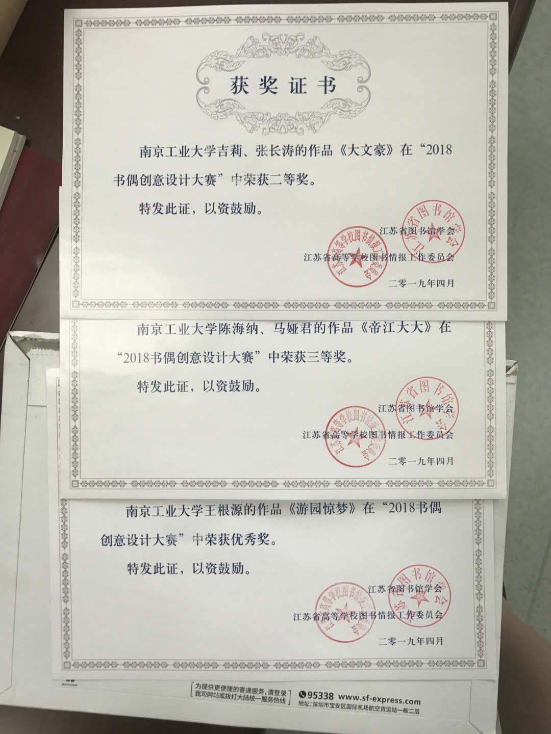 为进一步贯彻落实党中央、国务院关于倡导和开展全民阅读的战略部署,深入推进全民阅读,努力营造浓厚的阅读氛围,扩大阅读活动的社会影响,调动广大公众阅读积极性,营造“多读书、读好书、好读书”的书香环境,由江苏省图书馆学会阅读推广委员会等单位组织的面向江苏各图书馆读者开展了“2018书偶创意设计大赛”作品获奖情况近日揭晓,共评选出特等奖2名,一等奖5名,二等奖10名,三等奖20名,优秀奖50名。太阳集团tcy8722学子积极参加了此次大赛,并取得了优秀成绩。其中:吉莉、张长涛合作的作品获二等奖,陈海纳、马娅君合作的作品获三等奖,王根源的作品获优秀奖。