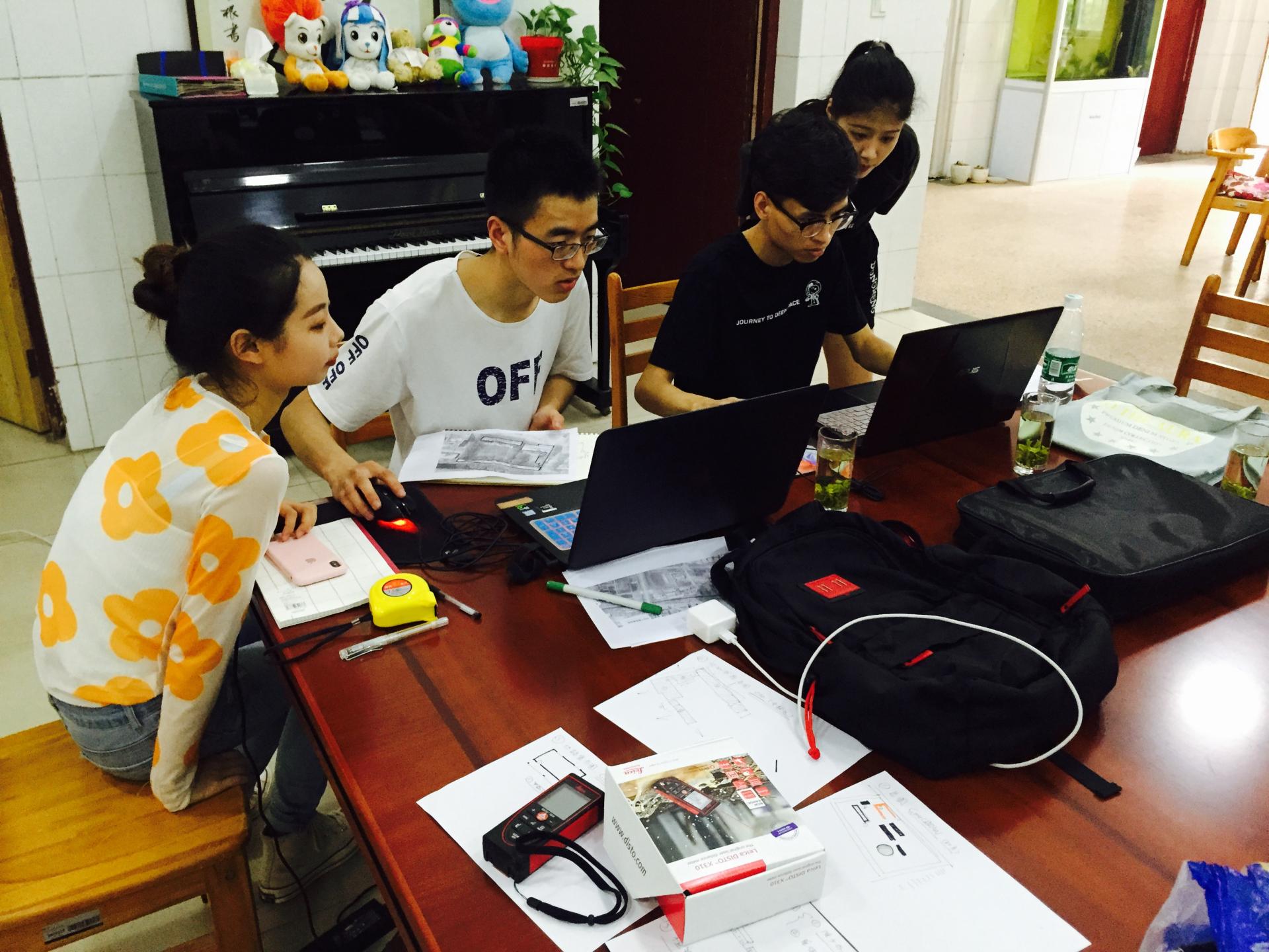 艺术与科技专业韩静、夏睿、靳铭、徐虎为行知教育书院考察测绘