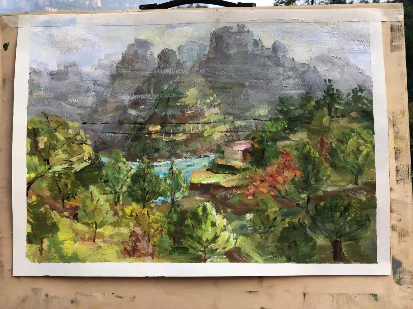 在写生基地进行了一周写生后,老师带我们来到了峡谷风景区采风。在有爱情谷之称的桃花谷中,到处瀑落成潭,潭落成瀑,永不分割。微风吹过,潭面荡起碧绿清波。漫步王相岩的林荫小道上,传奇的故事、千年的皂角树、古老的建筑......世外桃源的模样,让心在此休养。