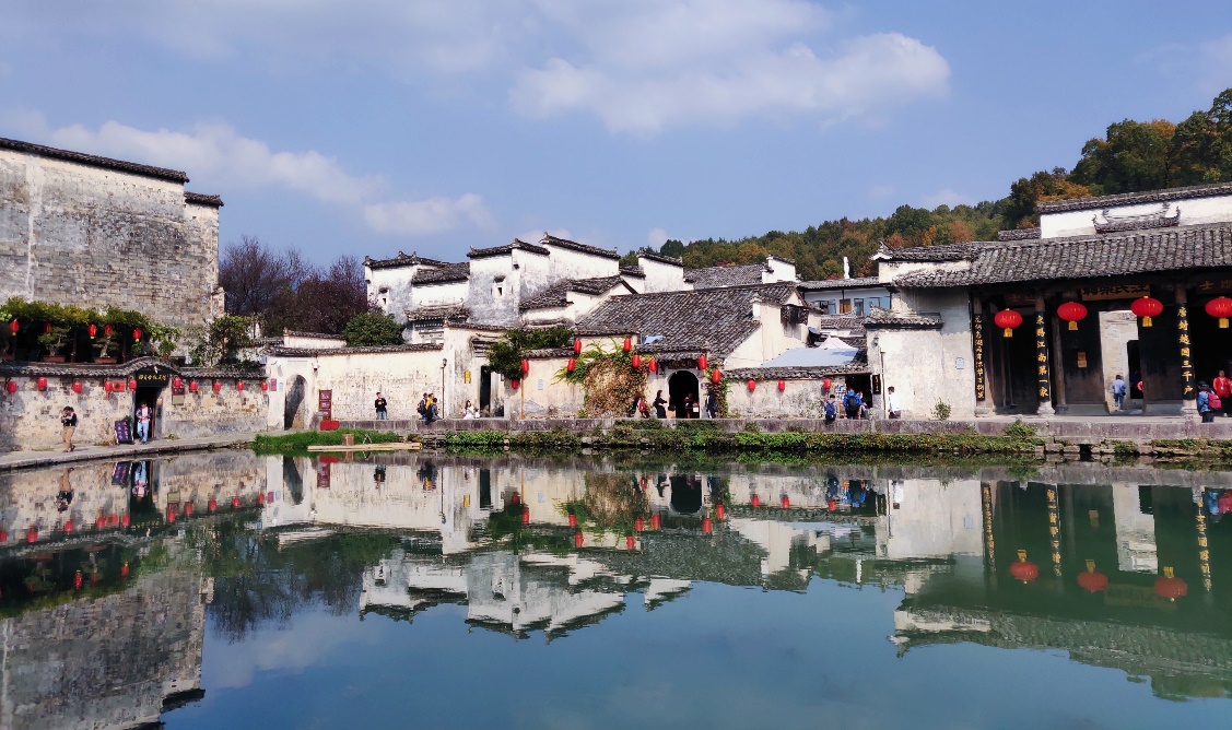 黄山黟县具有典型的徽派建筑风格,粉墙黛瓦是徽派建筑的突出特点。徽派古民居村落选址、布局和建筑形态,那些典雅的明、清民居建筑群与大自然紧密相融创造出既合乎科学,又富有情趣的生活居住环境,是中国传统民居的精髓。