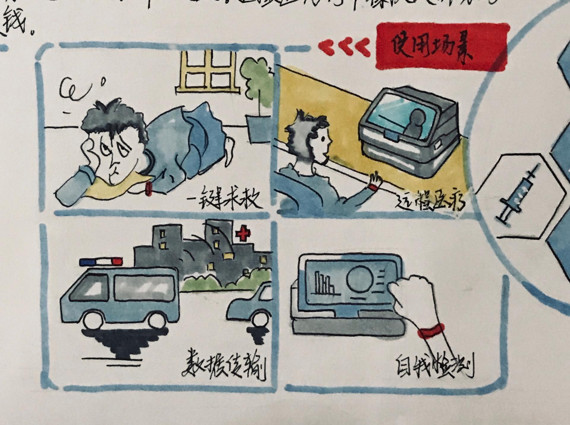 情景图是将产品的操作方式表达的更为系统和全面,它可以在表达出产品在特定环境下到底是怎么和人们互动的,帮助观众更好的理解产品的设计内容。