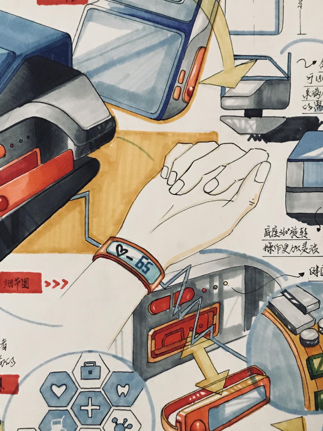 情景图在产品快速表现中主要给人们提供一种可视化的引导作用。确保观众对产品信息的准确理解,也能帮助设计者通过结合简单的故事性创意草图,对故事内的产品信息进行更为全面和深入的思考。情景图的绘制无需过于精细,只需要通过其表达出设计者想表达的信息即可。