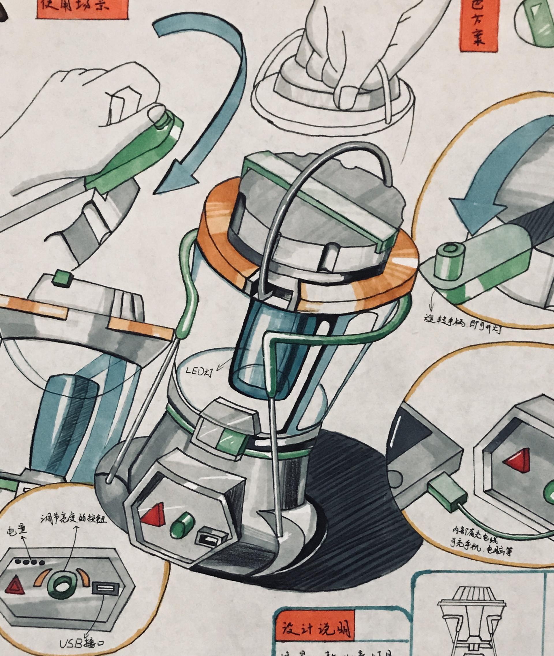 若设计方案对使用环境或时间有特殊要求,那么就需要绘制出情景使用图来对其做出一定程度的表现。