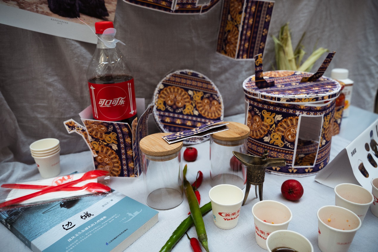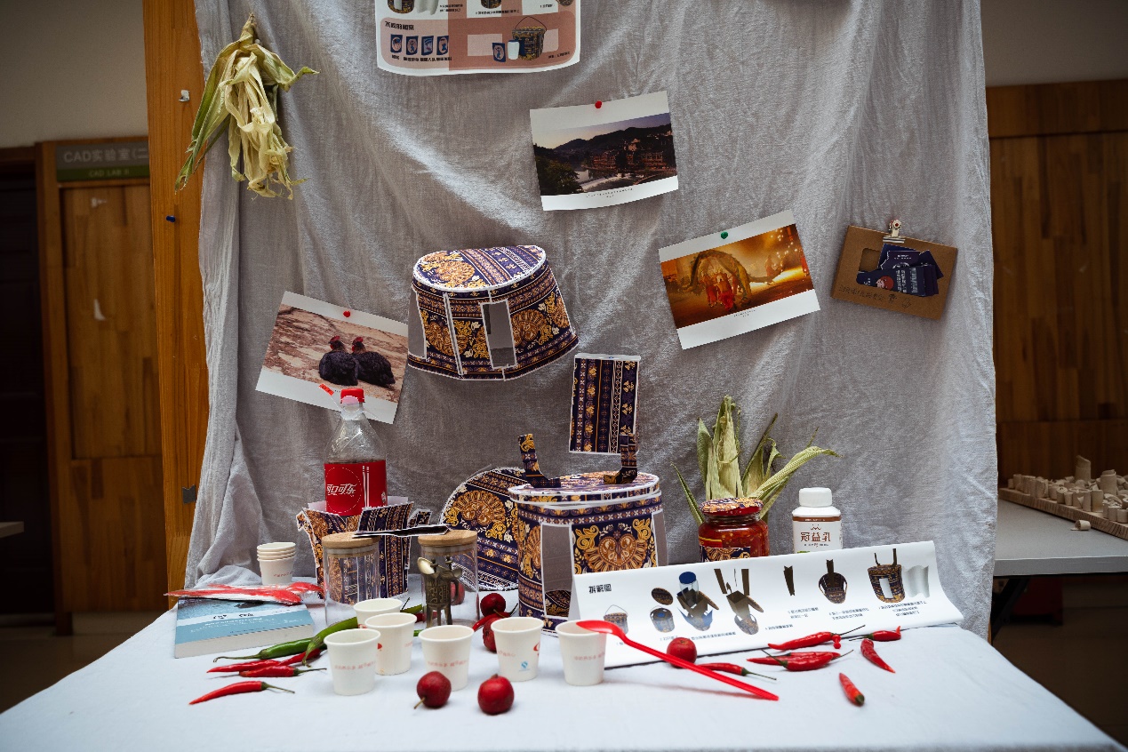 风俗、文化、民俗、织物、纹饰、色彩被同学们融入设计中,设计源于生活,展示给大众,这里有始于汉宋、景德年制,如果没有去过代表中国陶瓷的景德镇的话,那就来先看看这里的作品展。还有百里苗乡,下饭续命,根正苗红的苗族辣酱,彩云之南,凭手点蜡,云南蜡染的美丽,你不能不来看一看,花茶带你走进新年,土家织锦西兰卡普让你知道什么叫“四十八勾名堂大,最难岩墙椅子花”。