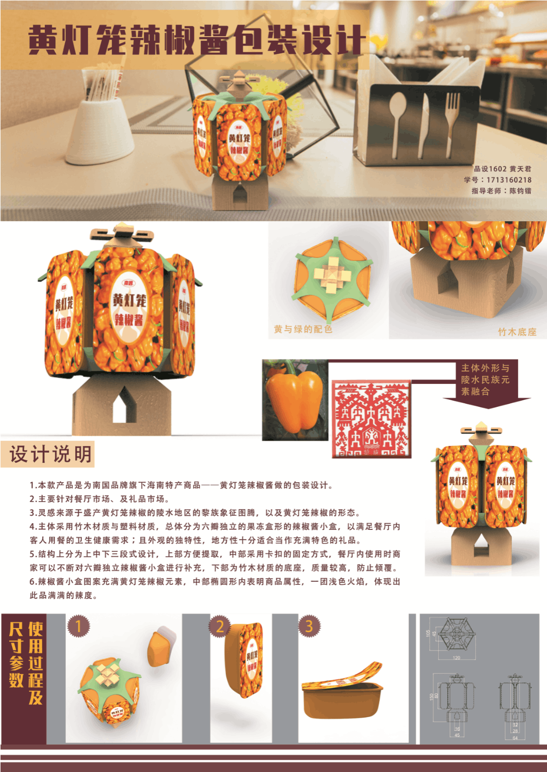 本次展览是品设2016级员工对包装设计课程学习的一次总结和检验,也是对同学们这段时期辛勤努力一种的褒奖。在指导老师与同学们的共同努力下,大家克服了课时短、参赛时间紧的困难,顺利地完成了所有作品并取得了佳绩。通过课程学习,进一步提升了同学们的设计技能,开拓了设计眼界,积累了设计经验,为下一步专业课程学习和今后的设计工作典定了一定基础。(作者:陈钧锴,单位:太阳集团tcy8722,审核:陈建华)
