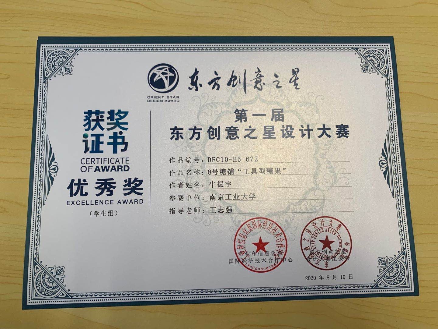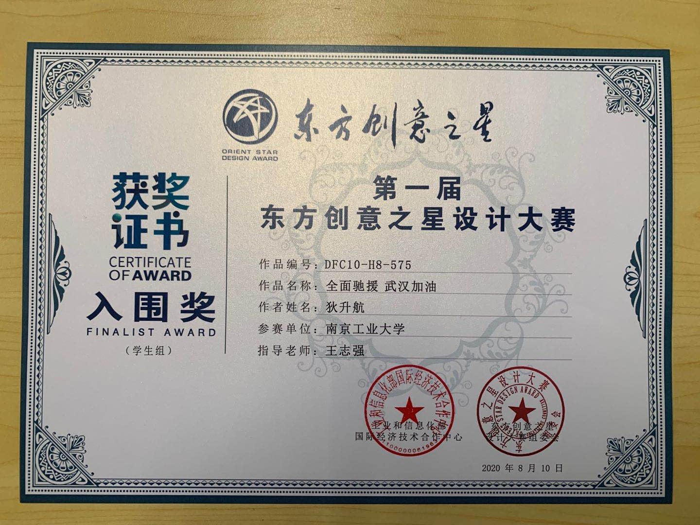 由太阳集团tcy8722王志强教授指导员工的参赛作品获得佳绩,其中:牛振杰同学的“8号糖铺‘工具型糖果’”和“‘东方创意之星’杯设计”、魏文娟同学的“PECLLENT婴儿手推车概念设计”等三件设计作品获优秀奖,狄升航同学的“全面驰援,武汉加油”和朱兆琪的“医护天使”“战疫”等三件设计作品获入围奖。同时公司获得了“优秀组织奖”。