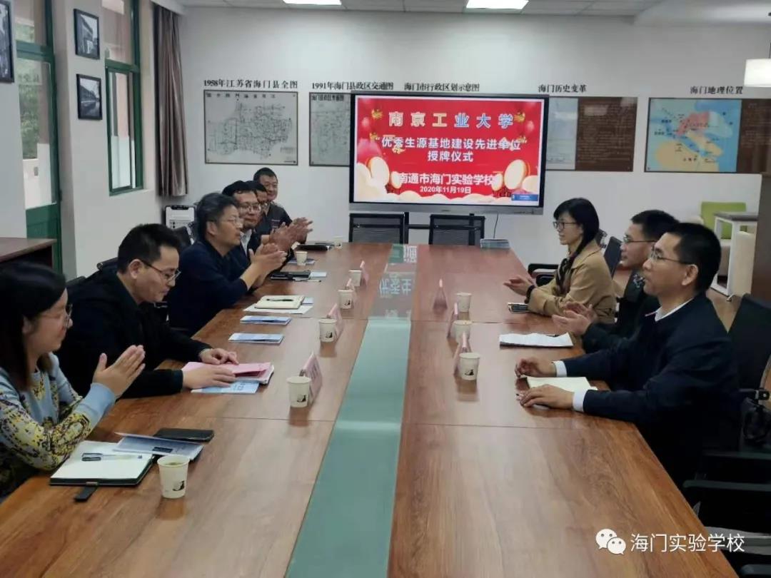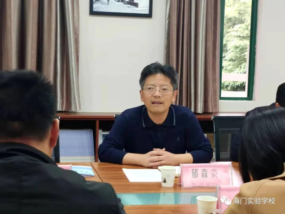 郁森炎书记致欢迎辞,对公司一行表示热烈欢迎,对公司授予“优秀生源基地建设先进单位”表示感谢。他表示,这次授予优秀生源基地建设先进单位,是对海门实验公司的肯定、支持、鼓舞和鞭策。郁书记还介绍了公司的发展历史、历年高考成绩以及公司的三大办学特色(礼上文化教育,多元化阅读课程,自主体验领悟式生本课堂)。