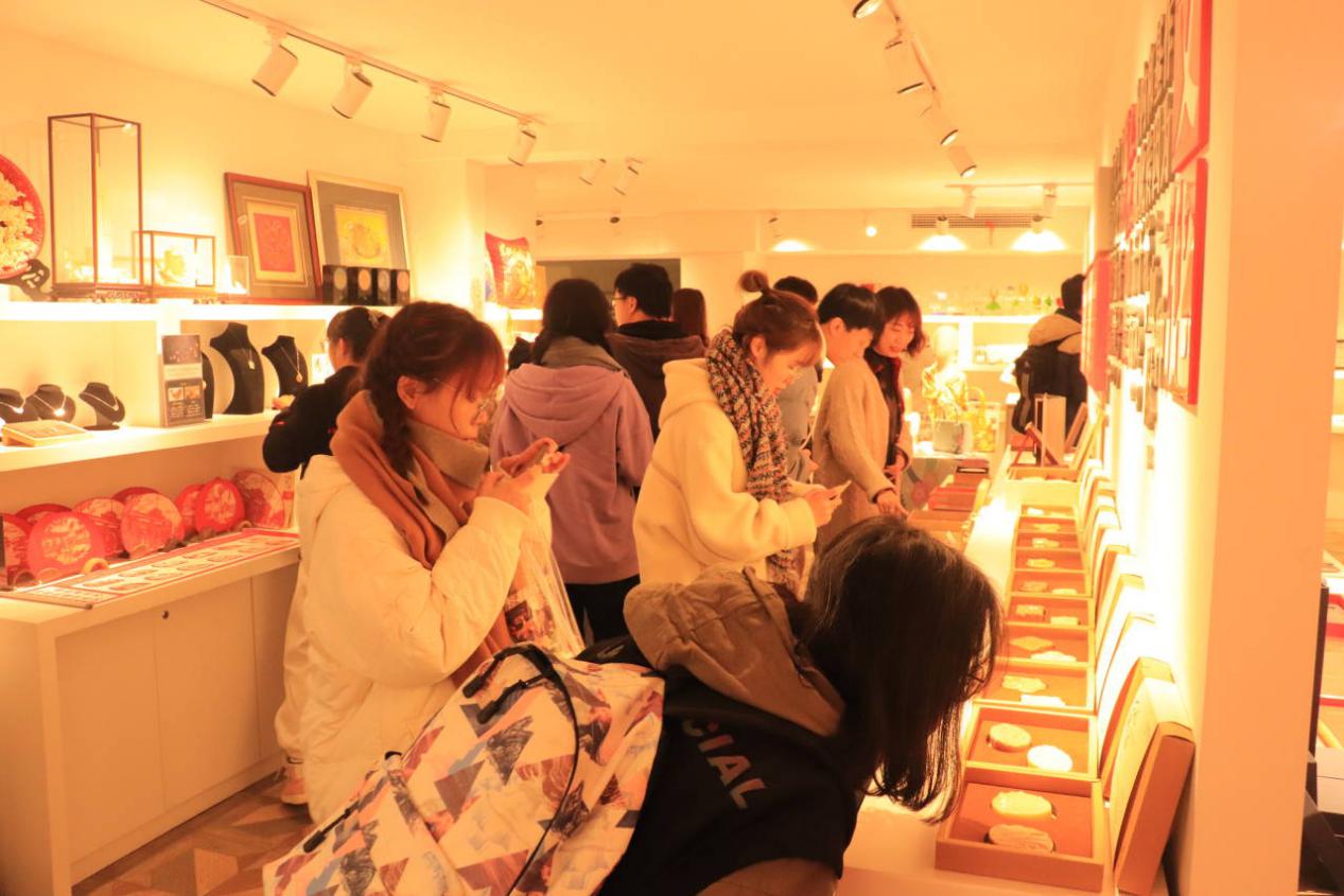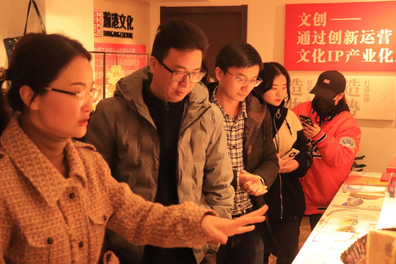 最后,大家在胡总与设计部经理王小艳的带领与讲解下,参观展厅中的文创产品。