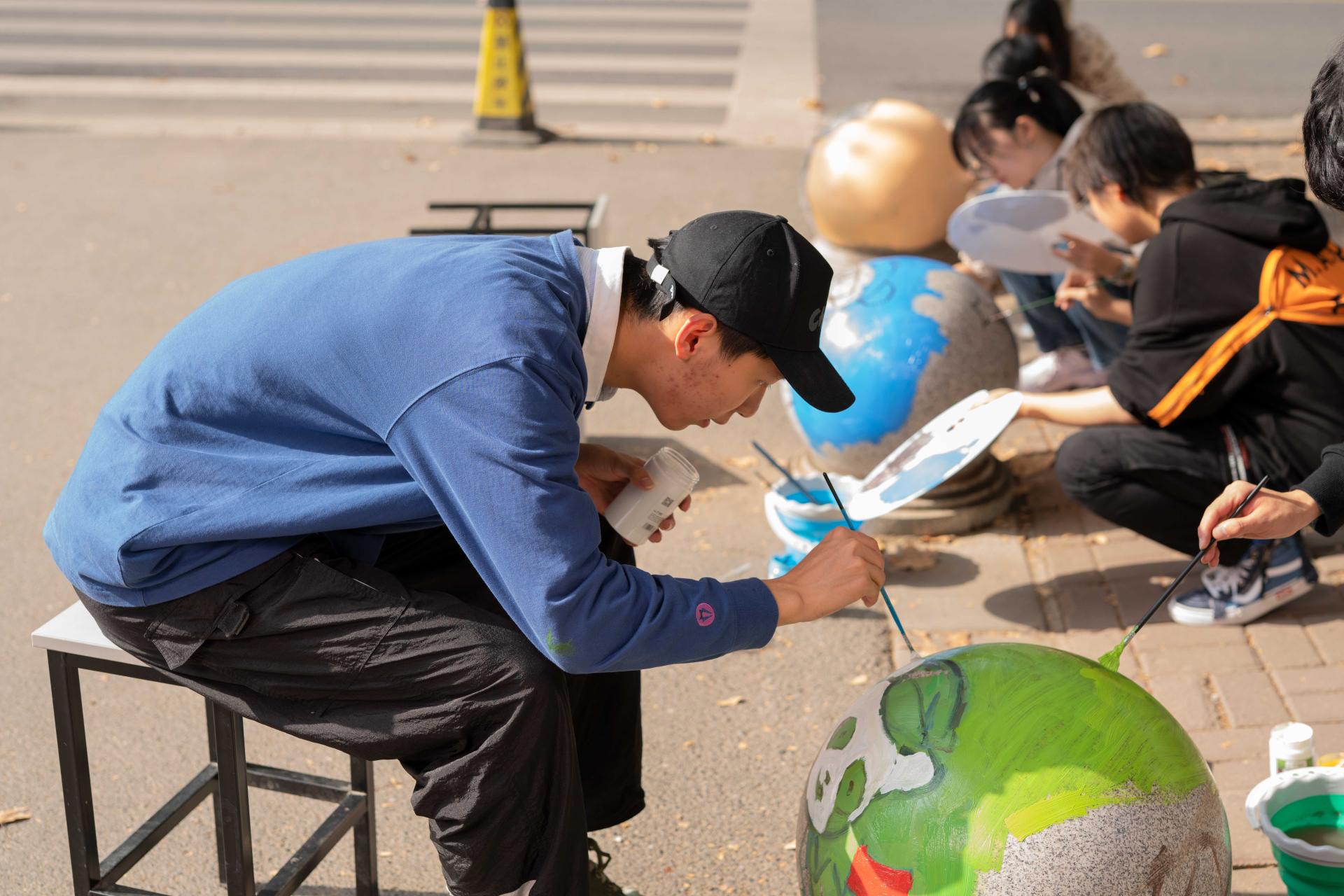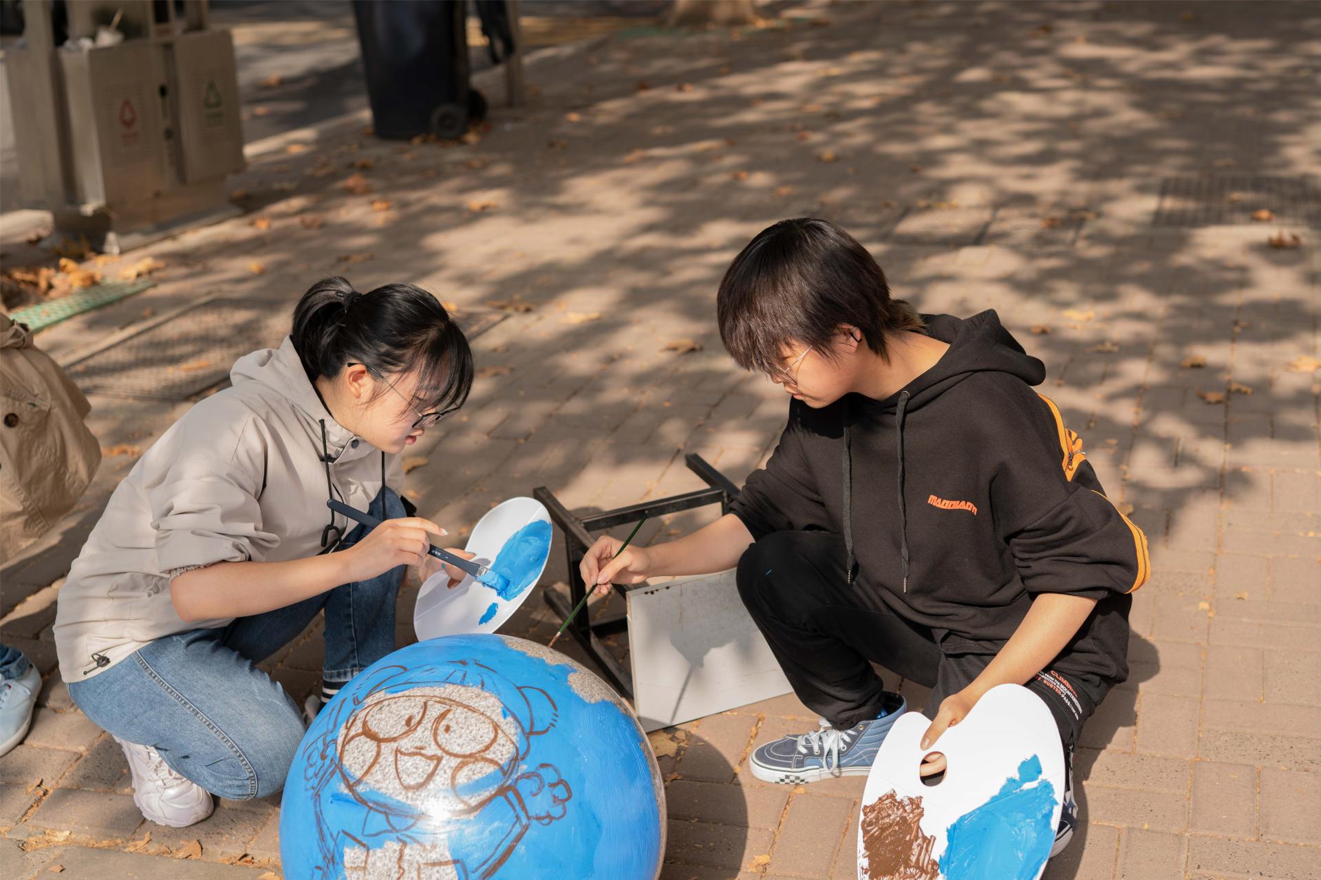 活动前期,同学们根据主题绘制草图,确定了石墩绘制的主体,并且提前准备了活动所需要的颜料、画笔等材料。