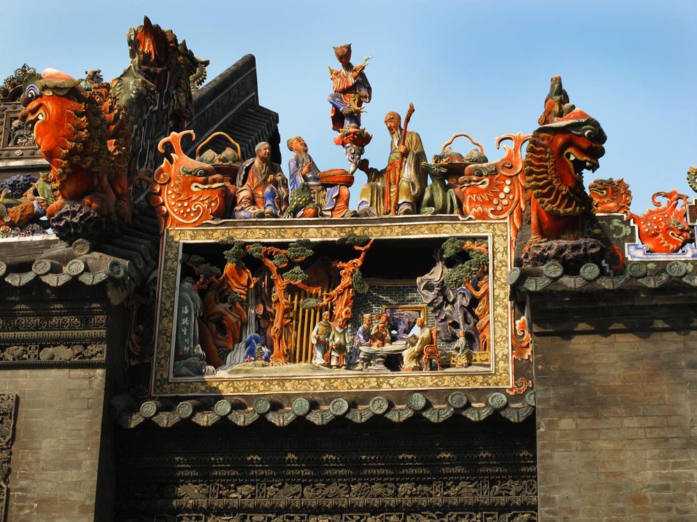 走进陈家祠,映入眼帘的是精美的建筑以及遍布在祠堂内外的木雕、石雕、砖雕、泥塑、陶塑、铁铸工艺等装饰物件,不禁让我们感叹工艺的精细与巧妙。