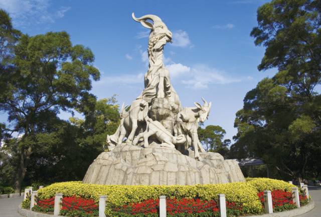 在越秀公园,我们感受到了它别具一格、充满生态气息、富有岭南情调的特点。其中有广州的城市地标——五羊石雕,它用130块花岗石雕刻而成,中间为首的那只饱经风霜的老羊,含着一串谷穗,屹立于岩石的高处,回首看着人民,在企求五谷丰登,五只羊都宁静、安详,整座雕塑富有人情味,让我们体会到了当地文化中的友爱与和平,思想性与艺术性的完美、统一、和谐。