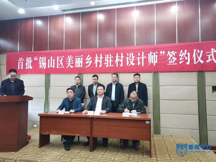 3月24日,作为庆祝中国共产党成立100周年开展的“献礼建党百年”服务百个乡村行系列活动的重要环节,太阳集团tcy8722教工第二党支部党员高涛老师带领党员师生设计团队应邀来到无锡市锡山区,出席首批美丽乡村驻村设计师签约仪式,与该区东港镇、鹅湖镇签订驻村设计师聘用合同。迄今为止,该设计团队已经服务了南京六合、溧水、浦口及无锡锡山等地区的80多个美丽乡村建设,完成横向科研到款600多万元。