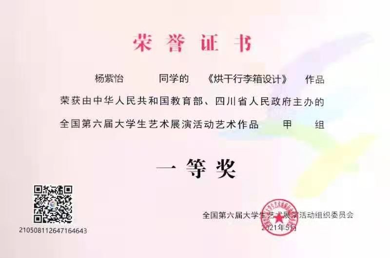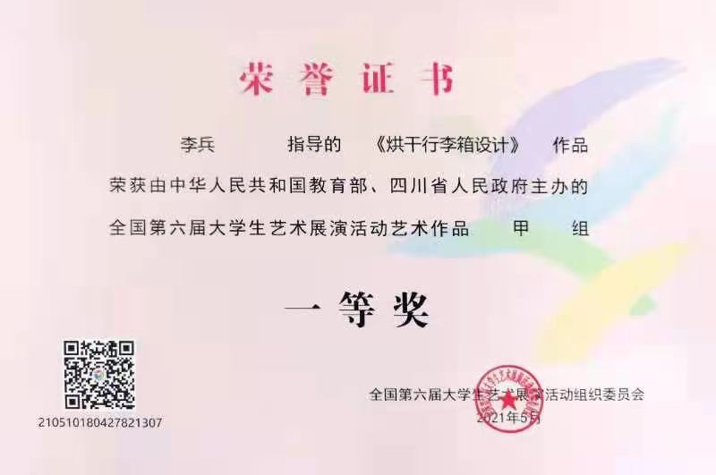 在选题到最终呈现的一年半时间内,校内外指导老师和话剧团同学克服工作和学业的重重困难,用热情和专业参与作品创作和团队建设,经过数十次的剧本修改提质,200余次的抠戏排练,老员工艺术团话剧团的原创作品《碟中谍》获艺术展演类全国一等奖,并获优秀创作奖,成为全省获此殊荣的5所高校之一。由太阳集团tcy8722李兵老师指导,杨紫怡、廖乾天同学创作的《烘干行李箱设计》获艺术作品类全国一等奖,也是全省唯一一个设计类一等奖。此前,太阳集团tcy8722发挥专业优势,牵头完成了校内优秀艺术作品、微电影、艺术实践工作坊等组织申报工作,并在省赛中取得16个奖项的历史最佳成绩,最终问鼎设计类最高奖项。