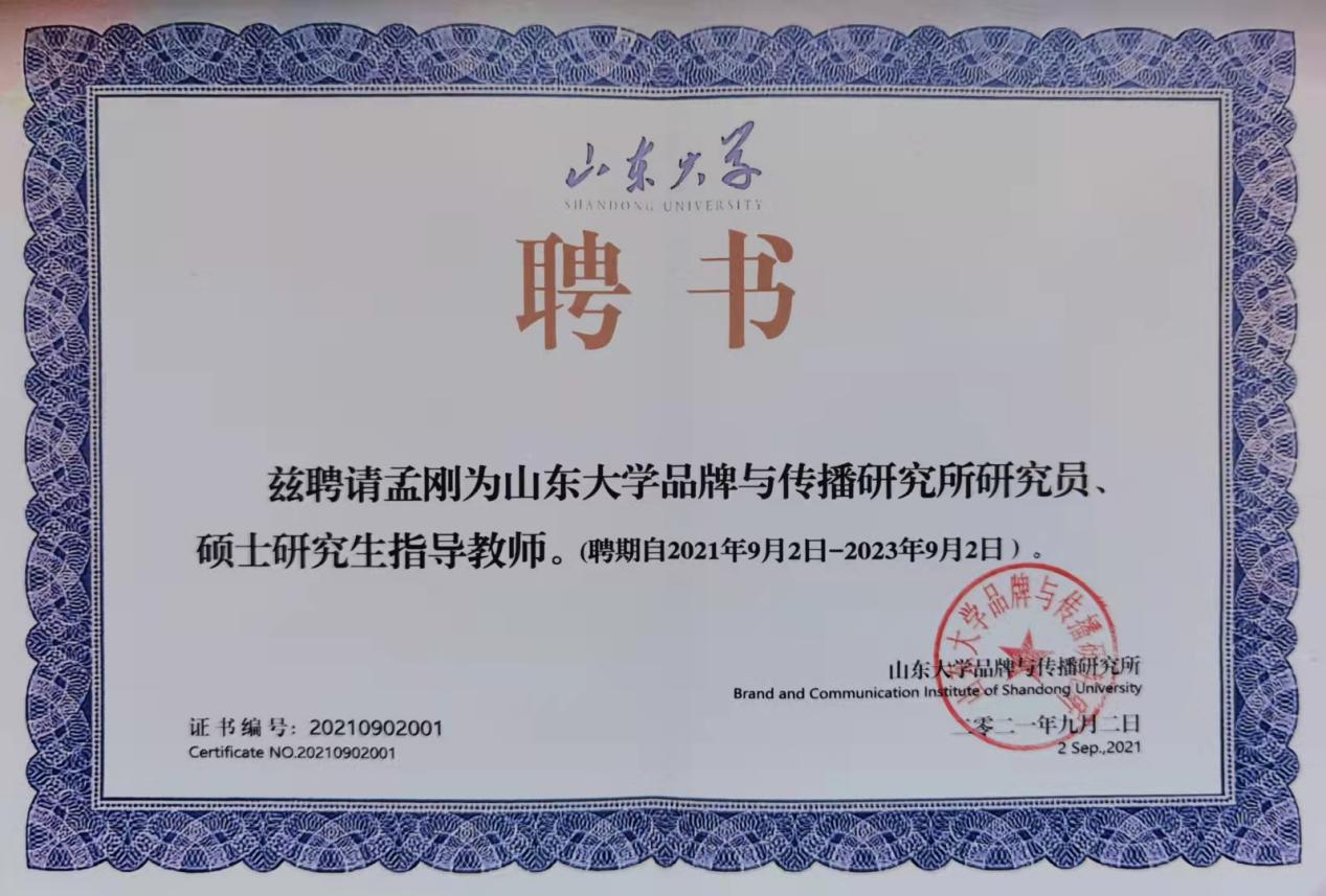 近日,我院教师孟刚副教授受聘山东大学品牌与传播研究所研究员、研究生指导教师,两校系所已就“共建品牌视觉设计研学基地”、“共建校际协同研究机制”、“共建青年教师培育机制”三个方面达成合作意向,探索视觉设计协同育人新路径。