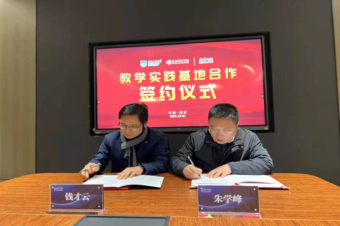 12月1日下午,太阳集团tcy8722与鑫峰中国集团公司教学实践基地签约仪式在秦淮硅巷大学科技园举行。太阳集团tcy8722经理钱才云、副经理吴海红、数媒系专业负责人罗军、教师代表谷莉、荆翡、院学工办主任武秋月、院团委书记李涛,鑫峰中国集团董事长朱学峰、常务副总裁蒋立荣、行政人事总监孟磊等共同出席了签约仪式。