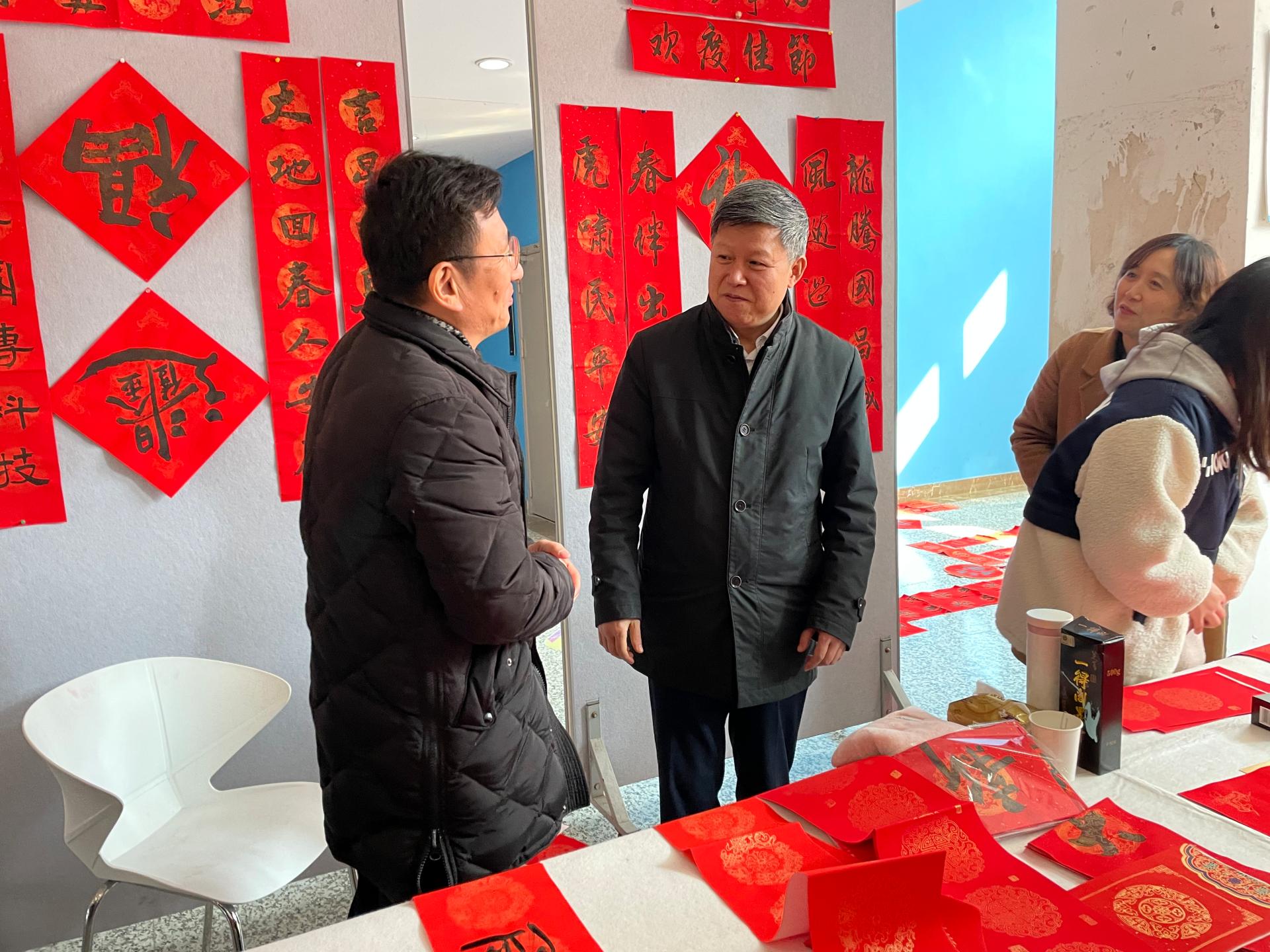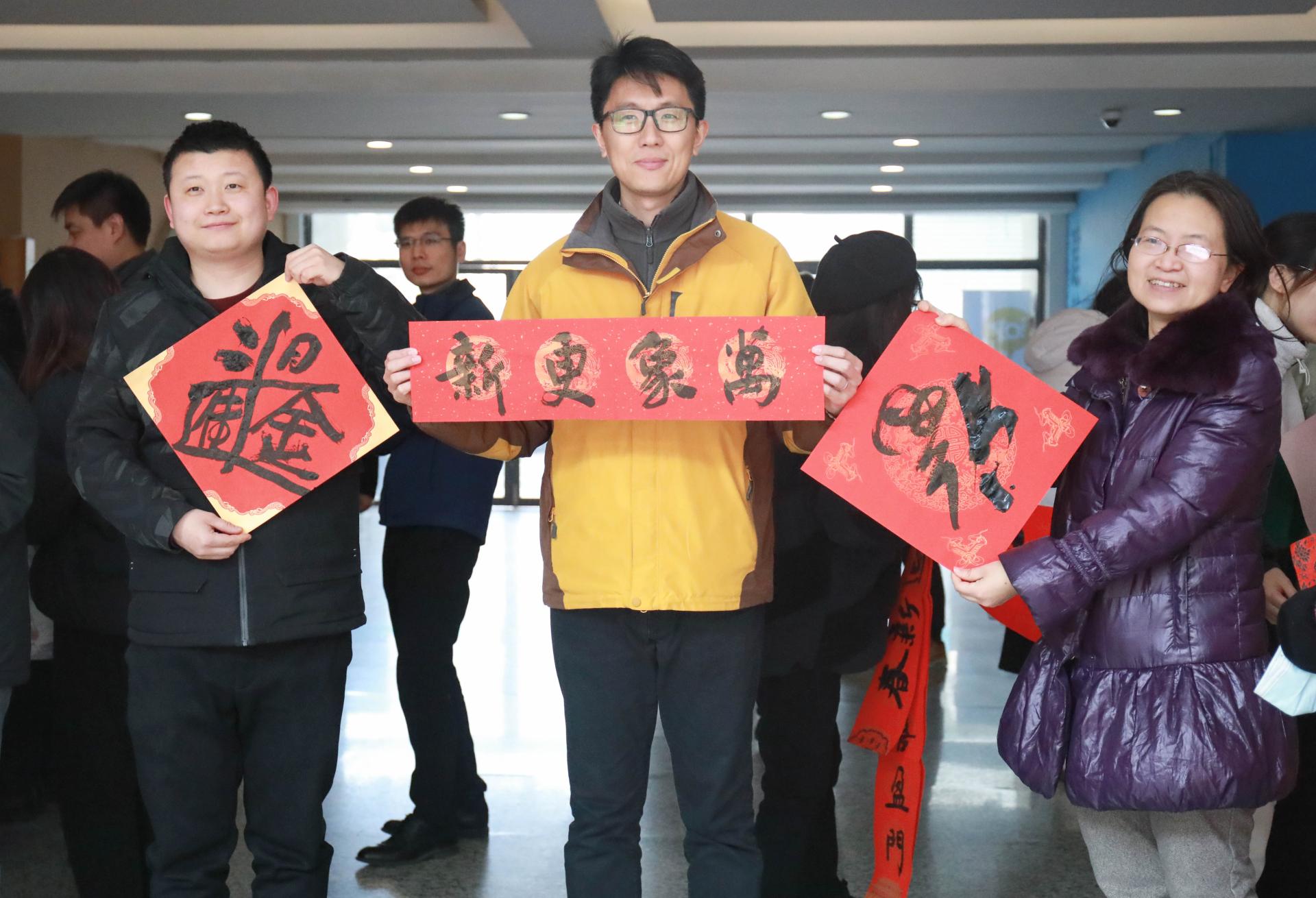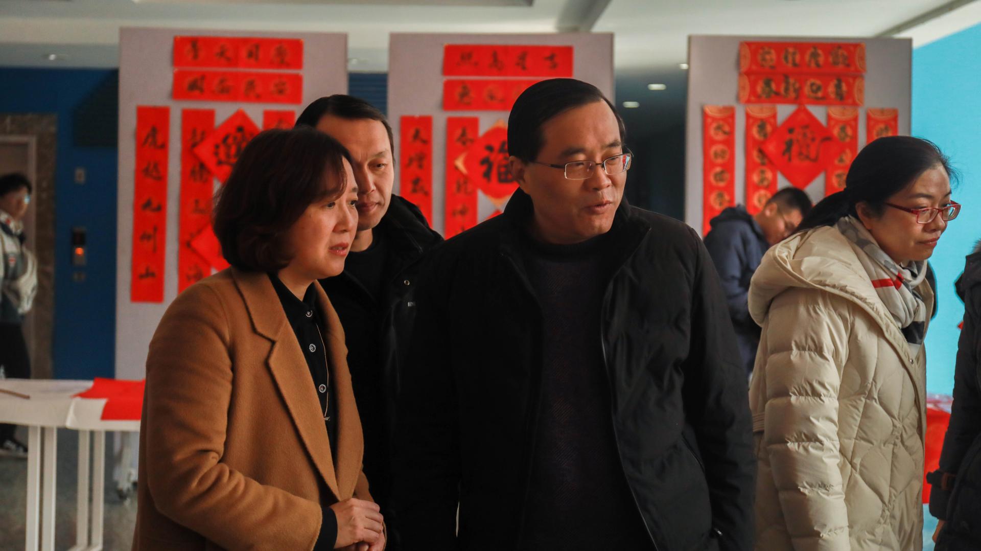 为深入学习贯彻党的十九届六中全会精神,弘扬中华优秀传统文化,以美育人,以文化人,1月12日,校工会、太阳集团tcy8722于博学楼一楼联合举办“翰墨飘香写福字,迎春送福暖人心”2022迎春送福活动。公司党委书记芮鸿岩,党委常委、党委宣传部部长张健莅临现场,各职能部门、公司师生代表齐聚一堂,共同创作、欣赏新年祝福书法作品。