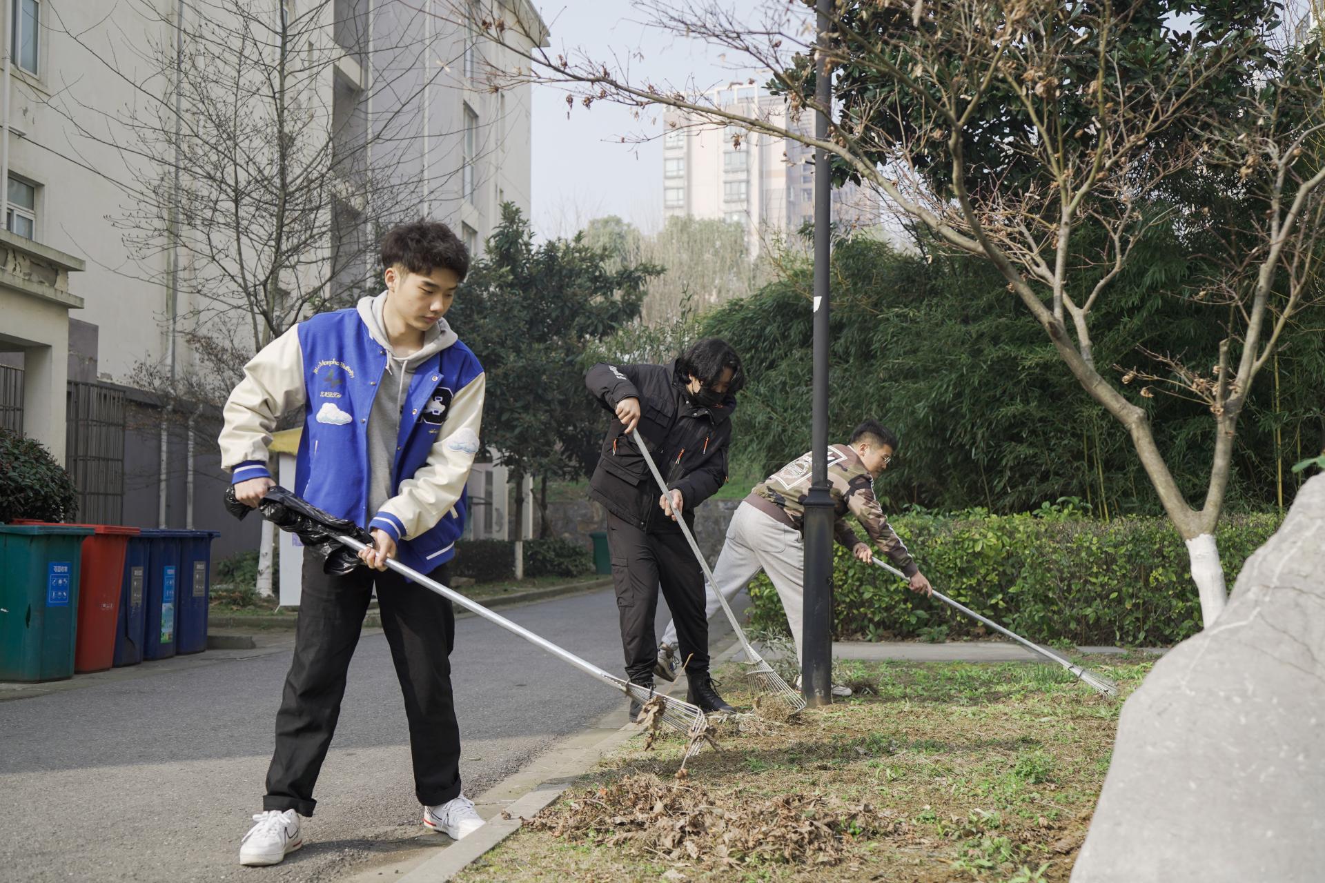 2022年3月2日上午,公司党委书记周静带领公司党政办公室老师以及部分教师、员工,组成多个小分队,对江浦校区南苑宿舍区等太阳集团tcy8722卫生包干区域进行全面清理整治。老师和同学们纷纷拿起工具,有的用长柄耙子耙绿化带上散落的树叶,有了挥动着扫帚清扫宿舍周边的路面,有的用垃圾夹夹建筑物周围的烟头和白色垃圾。通过师生们近一个半小时的整治,彻底清除了包干区域内室外卫生死角,展现在大家眼前的是一片卫生、文明、优美的校园环境,为新学期的开启营造出良好的校园氛围。