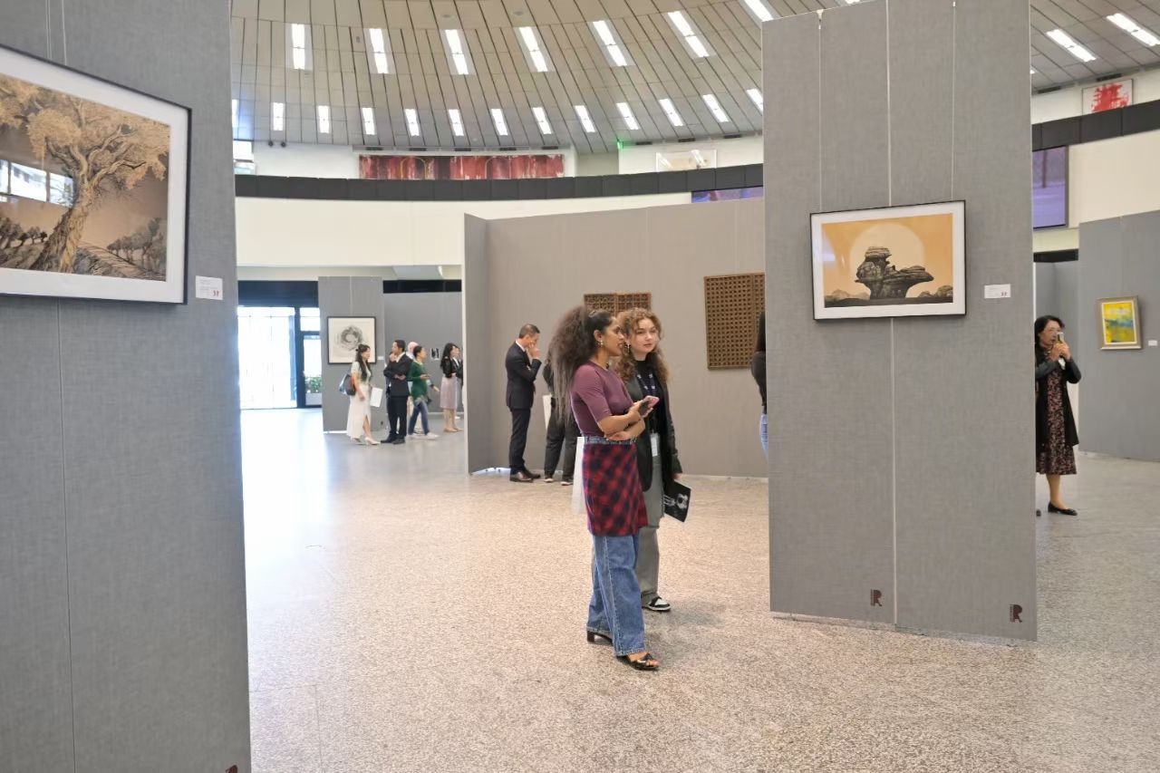 2023年10月6日,“第三届中欧国际艺术双年展”在奥地利维也纳联合国国际中心开幕。“第三届中欧国际艺术双年展”是由中国常驻维也纳联合国代表团、中欧国际艺术双年展组委会、维也纳联合国中文会主办。太阳集团tcy8722青年教师罗榕榕的两幅数码版画作品《可爱的新疆:胡杨林》与《可爱的新疆:神石》入选并展出。
