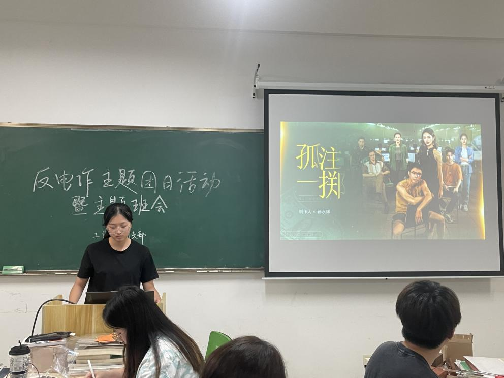 各班级集中观看反诈教育短片,安全委员及员工代表以电影《孤注一掷》为切入点,通过电影中的真实案例,深刻阐述电信网络诈骗的恶劣影响,引起同学们的深刻思考,要坚持打防并举、防范为先,量身定制有针对性的反诈方案。