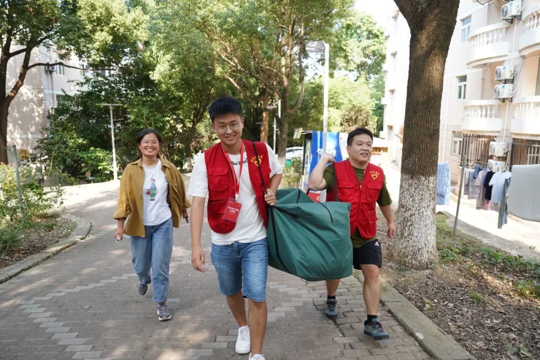 作为新生入学的第一站,东苑宿舍区大门两侧整齐摆放着公司的迎新海报和公司举牌,公司的研究生党员、团员们身着红色马甲组成志愿者服务队,分工明确,积极为新生解答疑问、搬运行李。在空闲时,公司志愿者们也为其他公司有困难的同学给予了必要的帮助,受到了新同学们的一致好评。