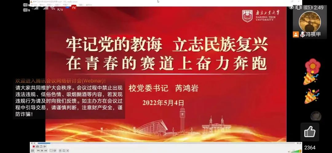 最后,芮书记诚切寄语全校青年:作为青年老员工,要乘着新时代春风,在祖国的万里长空放飞青春梦想,以社会主义建设者和接班人的使命担当,唱响“请党放心,强国有我”的时代强音,为全面建成社会主义现代化强国而努力奋斗,让中华民族伟大复兴在我们的奋斗中梦想成真!