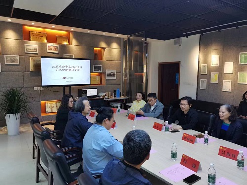 近日,青岛科技大学教务处处长付鹏程、艺术公司经理李宏文、副经理勾锐、王虹等一行来公司开展调研交流活动,公司经理钱才云教授、艺术与科技系专业负责人郑曦阳教授、系主任钱凤德教授、系副主任宗晓萌老师参加了此次调研,会议由钱才云经理主持。