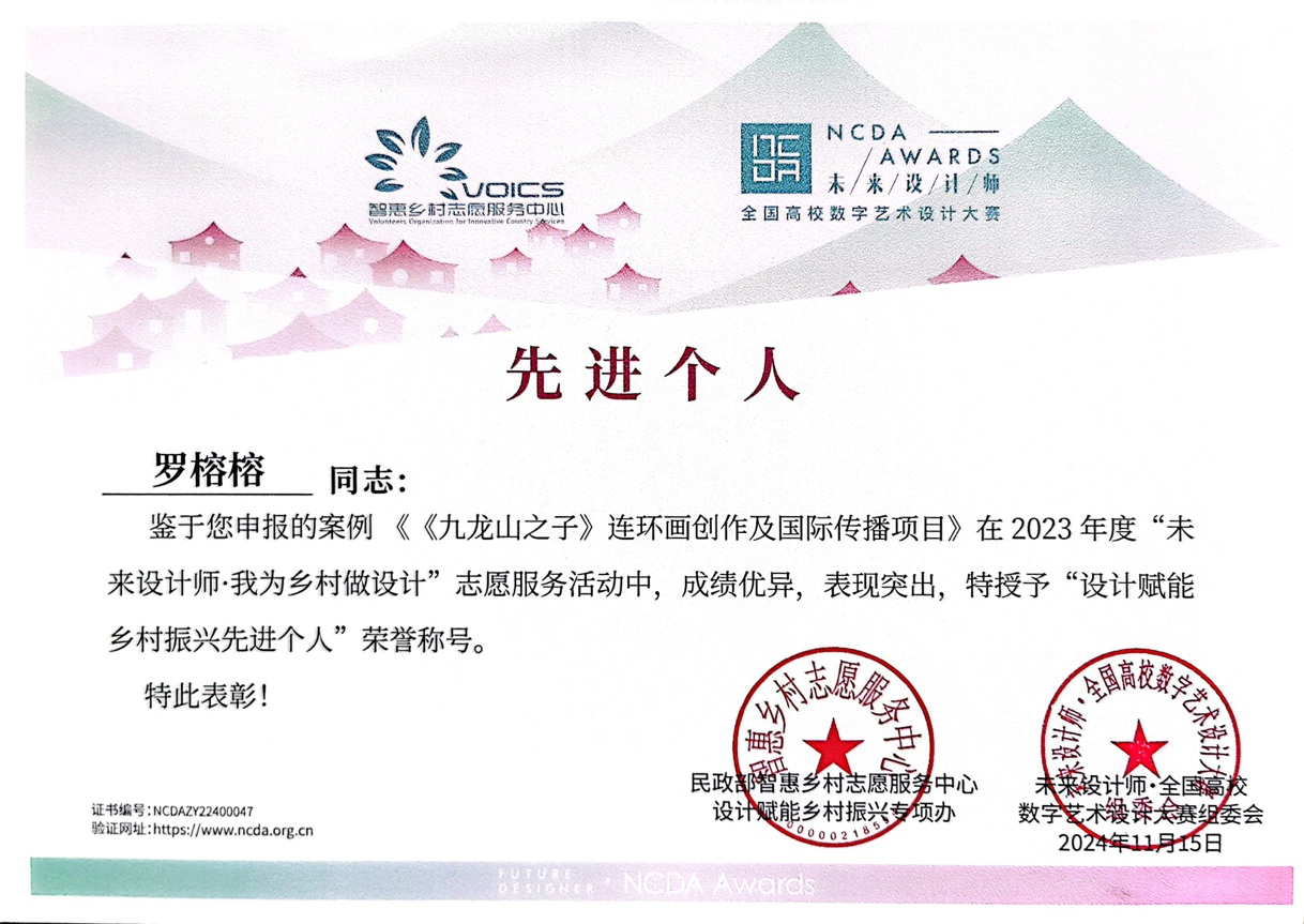 作为此次论坛的重要环节,大会举行了《设计的力量——全国高校设计赋能乡村振兴创新案例》发布仪式。我院罗榕榕老师主持的《<九龙山之子>连环画创作及国际传播项目》工作成果突出,入选优秀案例合集,正式全国首发,充分展现了我院教师在乡村振兴方面作出的积极贡献。