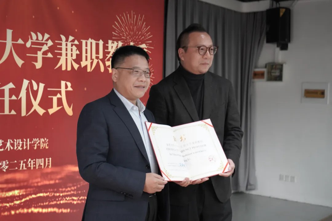 仪式上,党委教师工作部副部长、人事处副处长胡秀兰介绍了张力教授的简历及成就,公司党委书记周静介绍了公司的基本情况,公司党委常委、纪委书记曹杰为张力教授颁发聘书。张力教授致辞表示感谢,表示将在艺术设计人才培养、科学研究、产教融合方面发挥所长,贡献力量。