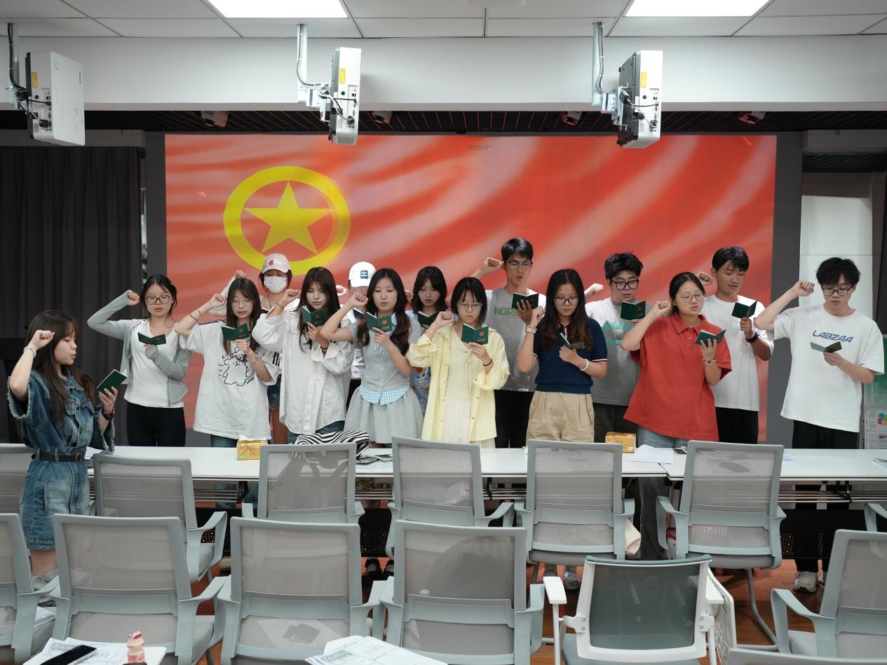 最后,在与会团员干部的见证下,新发展团员入团仪式顺利进行。公司团委兼职副书记刘玲玲为新团员颁发团员证,兼职团委副书记华雨暄带领新团员庄重宣誓。